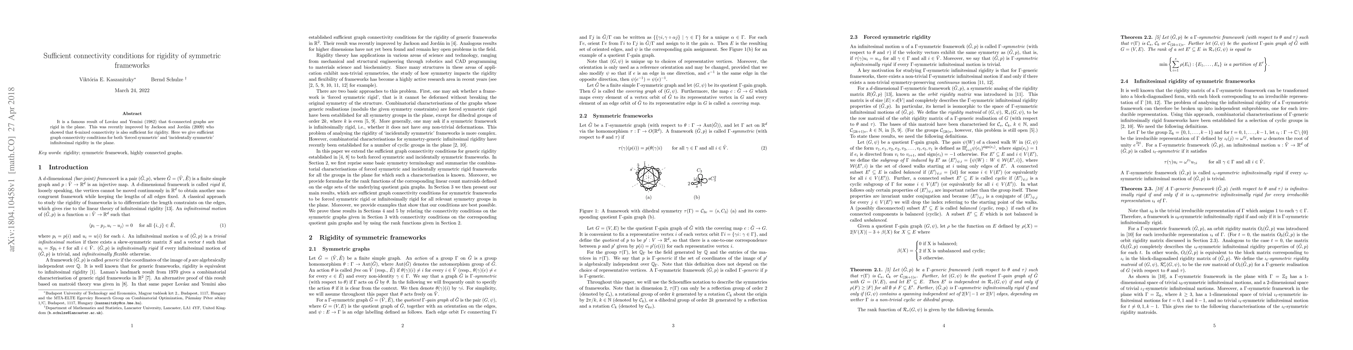 This paper establishes sufficient graph connectivity conditions for infinitesimal rigidity in symmetric frameworks in the plane, improving upon previous results by Jackson and Jordan (2009) and extending the concept of 6-connectedness to 6-mixed connectivity for both forced and incidentally symmetric frameworks.