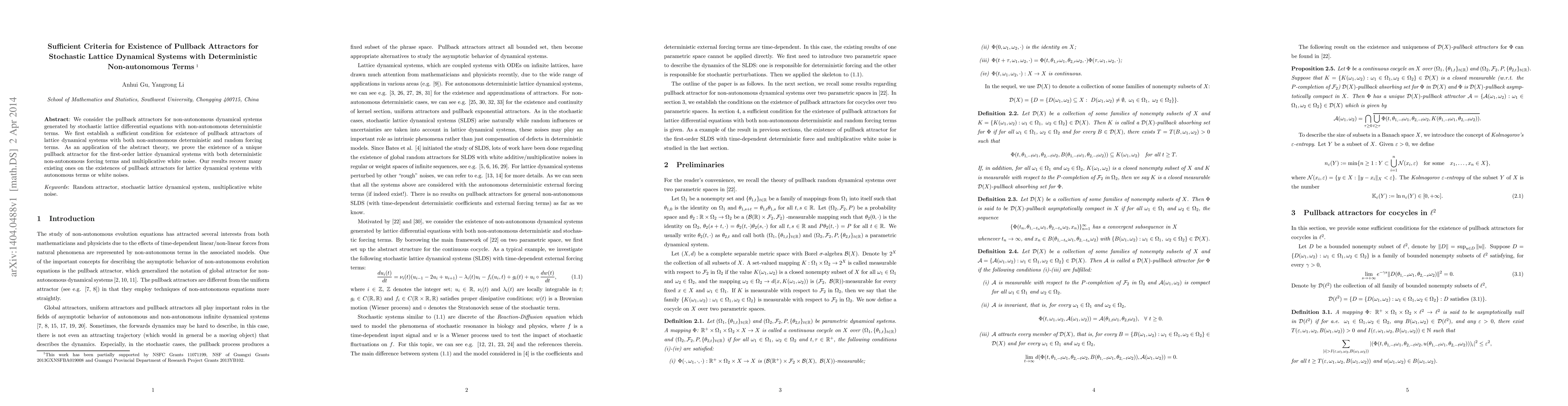 This paper establishes sufficient criteria for the existence of pullback attractors in non-autonomous stochastic lattice dynamical systems with deterministic terms. It also proves the existence of a unique pullback attractor for first-order systems with deterministic forcing and multiplicative white noise.