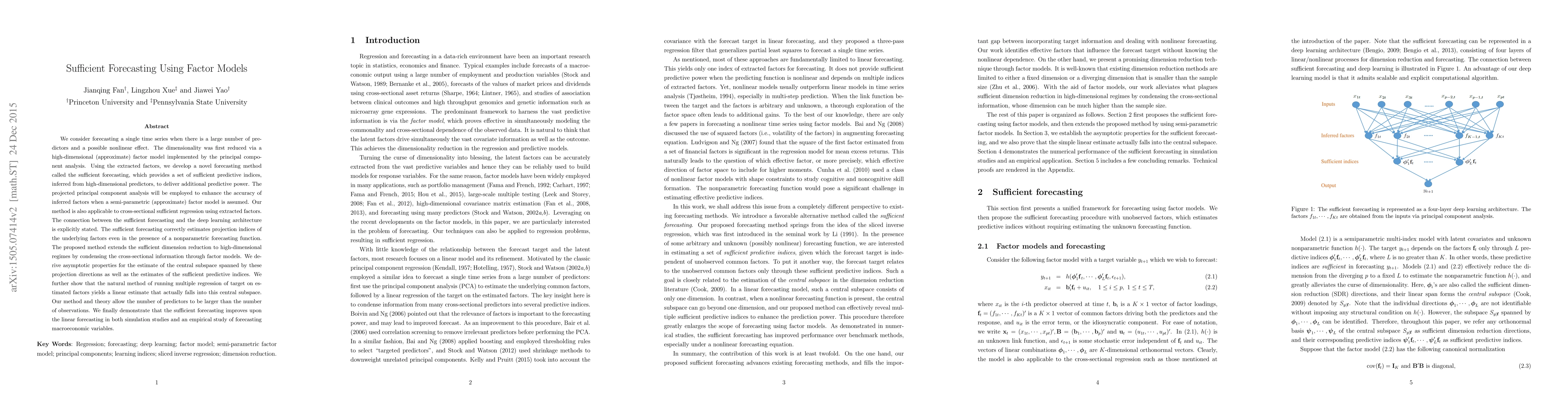 The work uniquely connects sufficient forecasting with deep learning architectures and extends sufficient dimension reduction to high-dimensional settings using factor models.