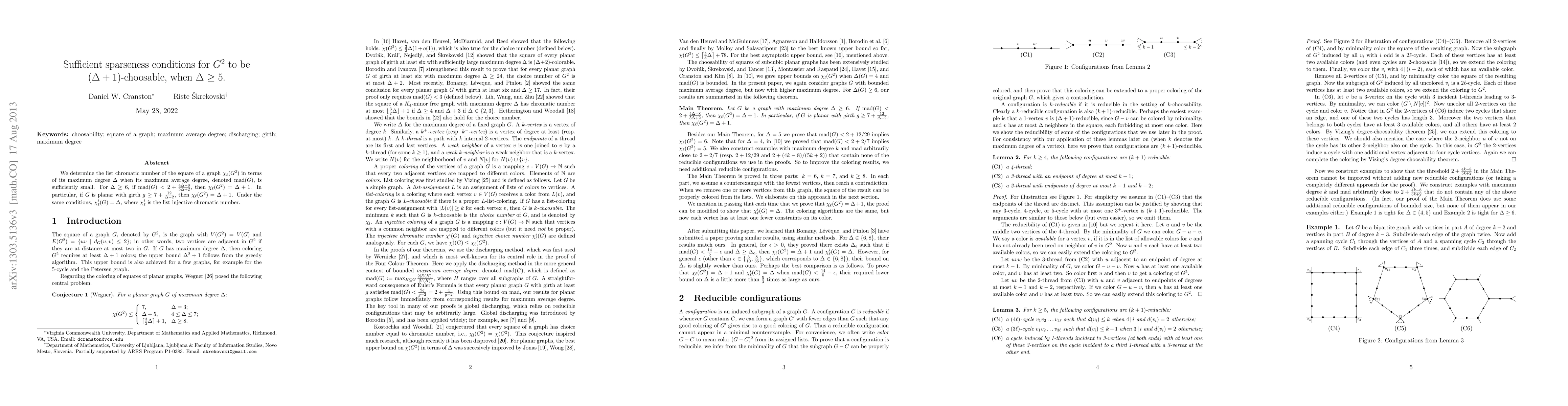 We determine the list chromatic number of the square of a graph $\chil(G^2)$ in terms of its maximum degree $\Delta$ when its maximum average degree, denoted $\mad(G)$, is sufficiently small. For $\Delta\ge 6$, if $\mad(G)<2+\frac{4\Delta-8}{5\Delta+2}$, then $\chil(G^2)=\Delta+1$. In particular, if $G$ is planar with girth $g\ge 7+\frac{12}{\Delta-2}$, then $\chil(G^2)=\Delta+1$. Under the same conditions, $\chil^i(G)=\Delta$, where $\chil^i$ is the list injective chromatic number.