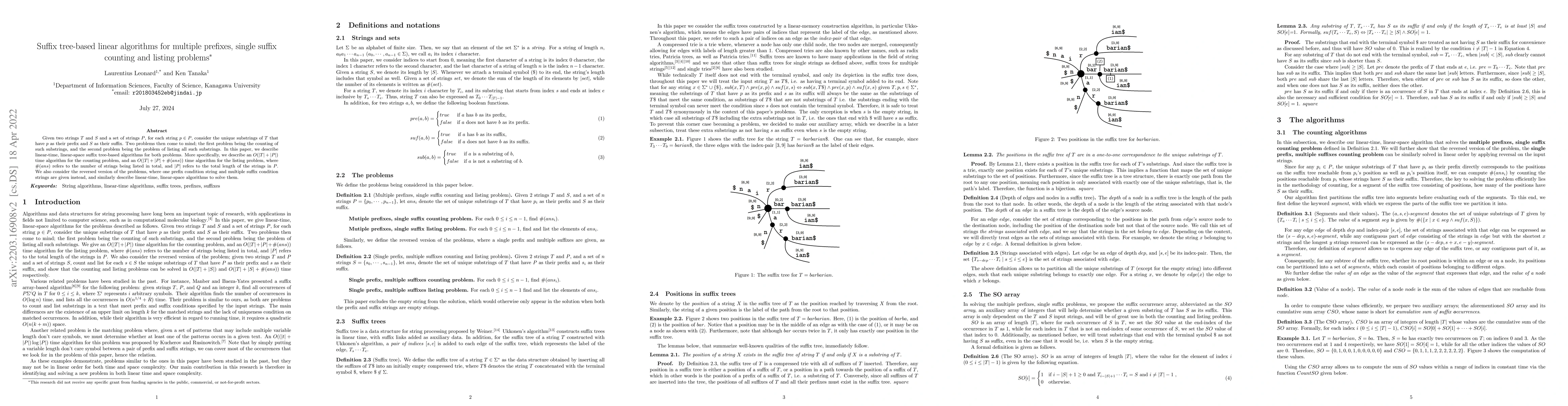 This paper presents linear-time, linear-space suffix tree-based algorithms for counting and listing substrings of $T$ that have prefixes in $P$ and suffix $S$. It also addresses the reversed problem with linear-time, linear-space solutions for multiple suffix conditions.