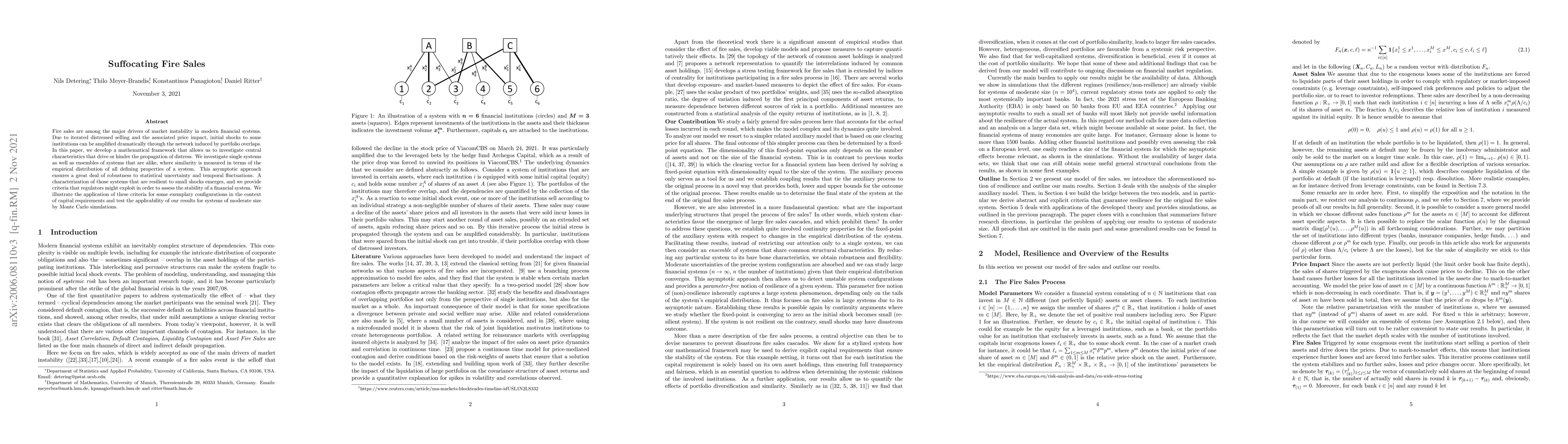 Fire sales are among the major drivers of market instability in modern financial systems. Due to iterated distressed selling and the associated price impact, initial shocks to some institutions can be amplified dramatically through the network induced by portfolio overlaps. In this paper, we develop a mathematical framework that allows us to investigate central characteristics that drive or hinder the propagation of distress. We investigate single systems as well as ensembles of systems that are alike, where similarity is measured in terms of the empirical distribution of all defining properties of a system. This asymptotic approach ensures a great deal of robustness to statistical uncertainty and temporal fluctuations. A characterization of those systems that are resilient to small shocks emerges, and we provide criteria that regulators might exploit in order to assess the stability of a financial system. We illustrate the application of these criteria for some exemplary configurations in the context of capital requirements and test the applicability of our results for systems of moderate size by Monte Carlo simulations.