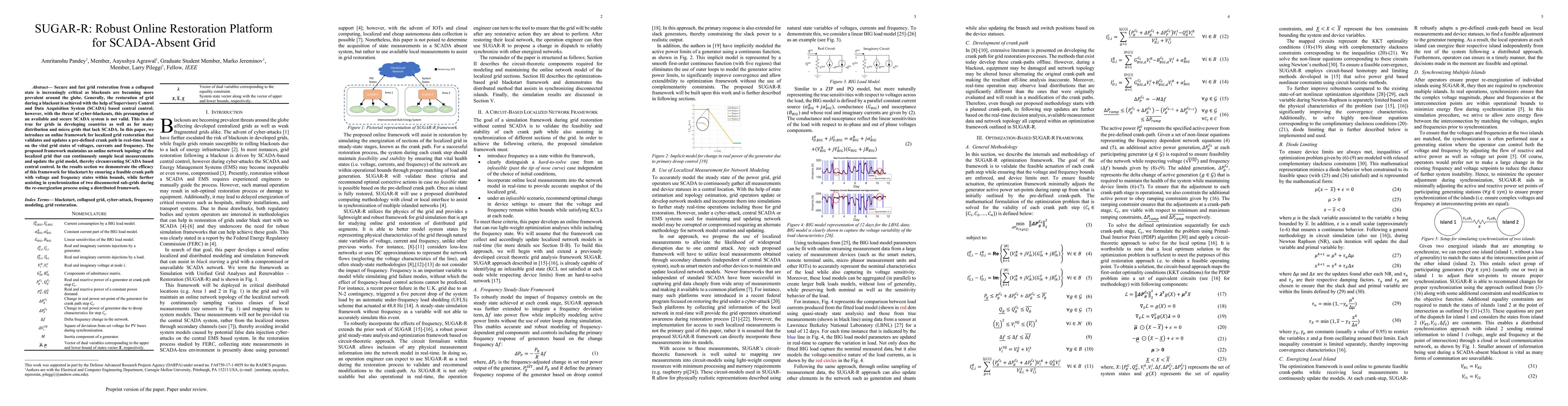 This paper introduces SUGAR-R, an online restoration platform for grids without SCADA, enabling secure and efficient blackstart and synchronization of sub-grids by real-time monitoring and updating of grid states and topology. The framework ensures voltage and frequency stability during restoration.