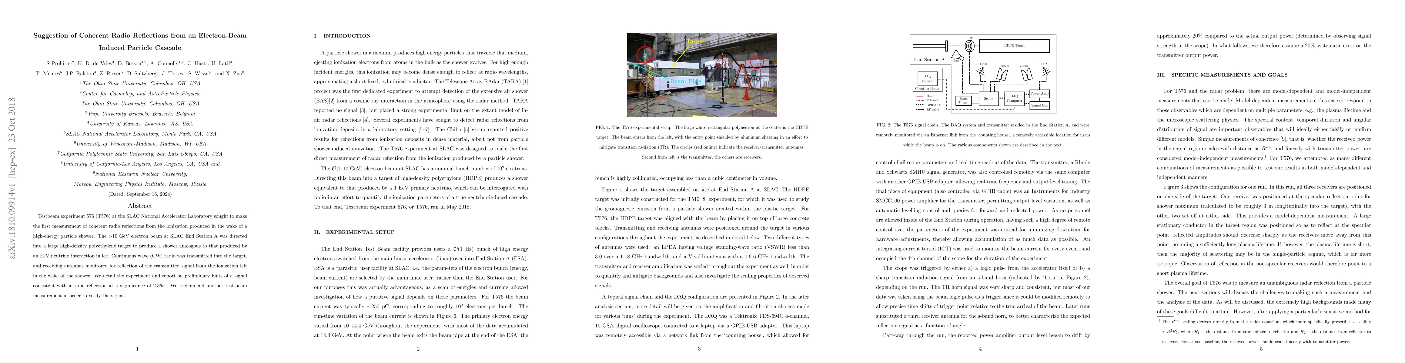 Researchers detected preliminary hints of radio reflections from an electron beam-induced particle cascade in a high-density polyethylene target, suggesting a possible new way to detect neutrinos.