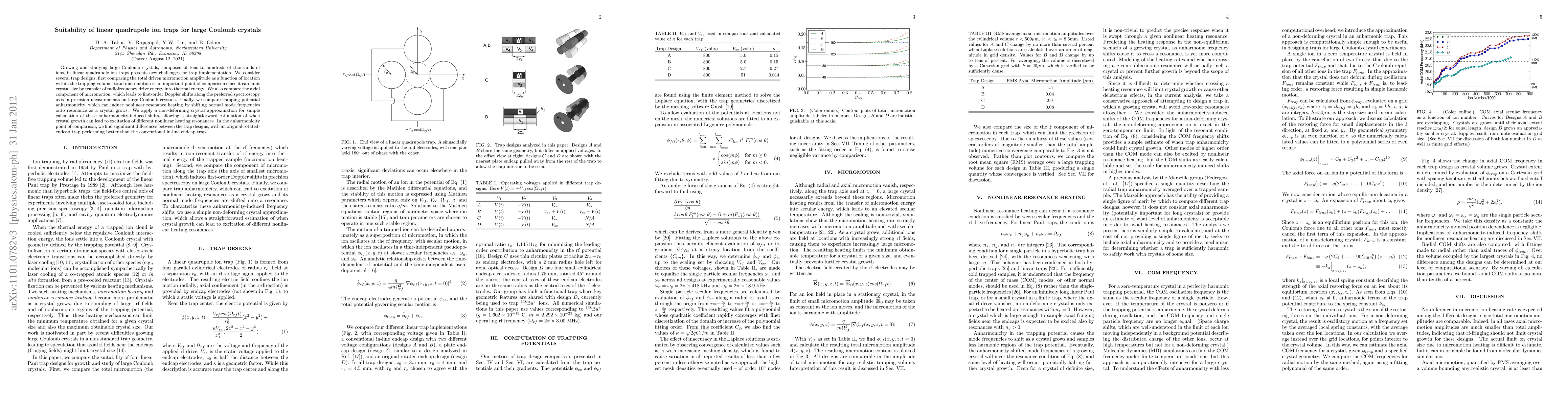 This paper evaluates various linear quadrupole ion trap designs for growing large Coulomb crystals, focusing on micromotion amplitude, axial micromotion effects, and trapping potential anharmonicity. The rotated-endcap trap design shows slightly better performance in these aspects compared to the conventional in-line endcap trap.