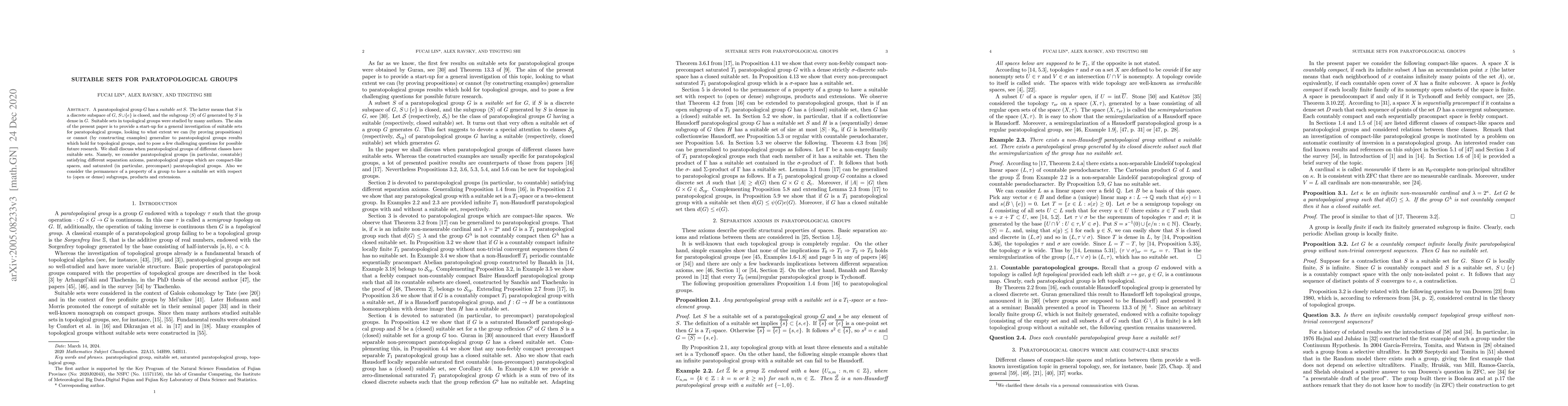 This paper investigates suitable sets in paratopological groups, defining them as discrete subspaces with specific closure and density properties. The study aims to extend known results from topological groups to paratopological groups, examining their existence under various separation axioms and topological properties, and proposing future research directions.