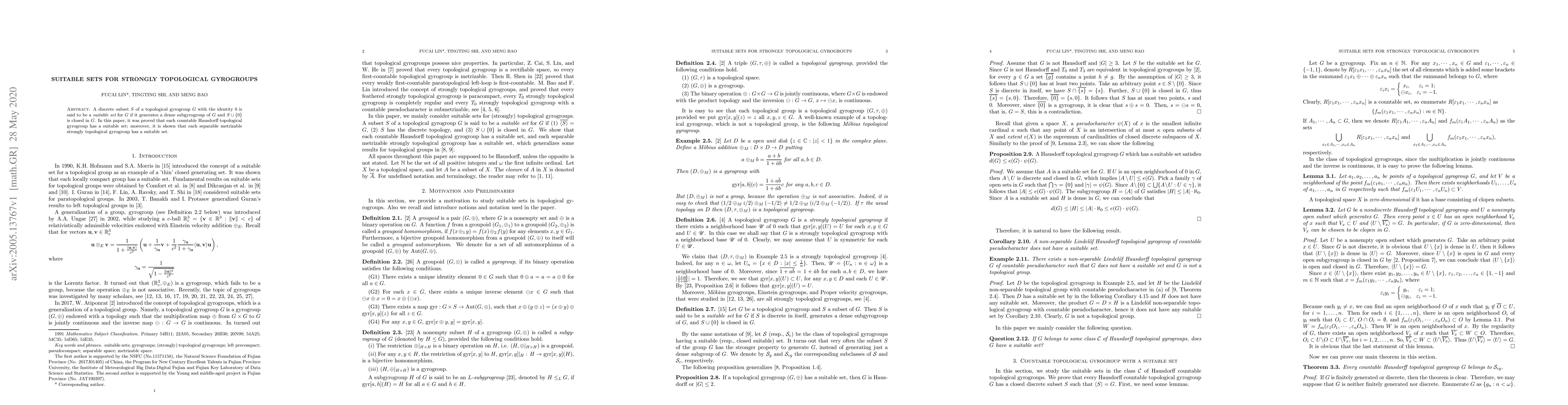 A discrete subset $S$ of a topological gyrogroup $G$ with the identity $0$ is said to be a {\it suitable set} for $G$ if it generates a dense subgyrogroup of $G$ and $S\cup \{0\}$ is closed in $G$. In this paper, it was proved that each countable Hausdorff topological gyrogroup has a suitable set; moreover, it is shown that each separable metrizable strongly topological gyrogroup has a suitable set.