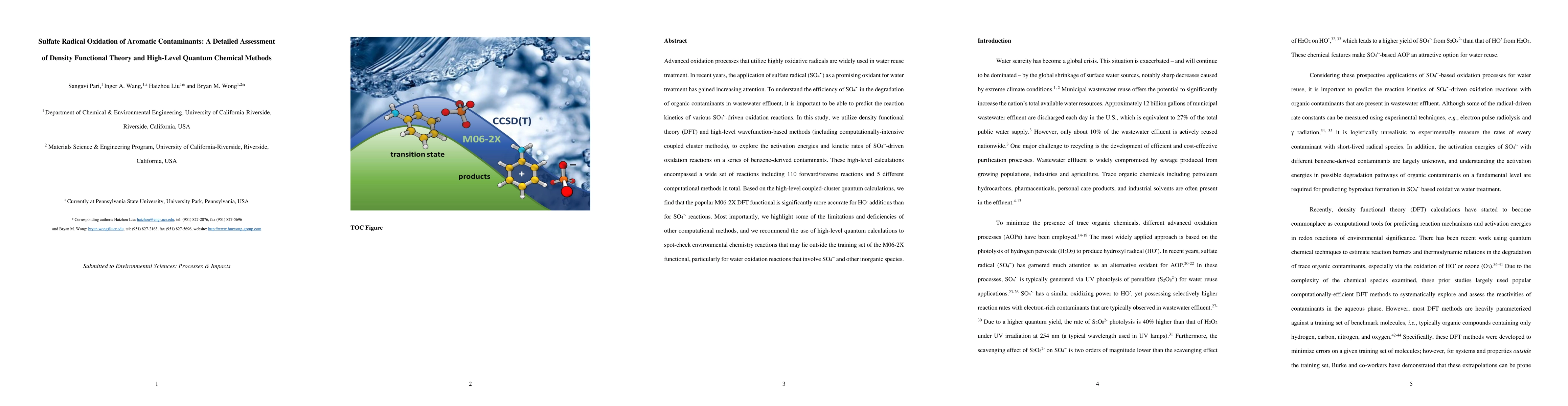 Advanced oxidation processes that utilize highly oxidative radicals are widely used in water reuse treatment. In recent years, the application of sulfate radical (SO$_4\cdot^-$) as a promising oxidant for water treatment has gained increasing attention. To understand the efficiency of SO$_4\cdot^-$ in the degradation of organic contaminants in wastewater effluent, it is important to be able to predict the reaction kinetics of various SO$_4\cdot^-$-driven oxidation reactions. In this study, we utilize density functional theory (DFT) and high-level wavefunction-based methods (including computationally-intensive coupled cluster methods), to explore the activation energies and kinetic rates of SO$_4\cdot^-$-driven oxidation reactions on a series of benzene-derived contaminants. These high-level calculations encompassed a wide set of reactions including 110 forward/reverse reactions and 5 different computational methods in total. Based on the high-level coupled-cluster quantum calculations, we find that the popular M06-2X DFT functional is significantly more accurate for HO-additions than for SO$_4\cdot^-$ reactions. Most importantly, we highlight some of the limitations and deficiencies of other computational methods, and we recommend the use of high-level quantum calculations to spot-check environmental chemistry reactions that may lie outside the training set of the M06-2X functional, particularly for water oxidation reactions that involve SO$_4\cdot^-$ and other inorganic species.