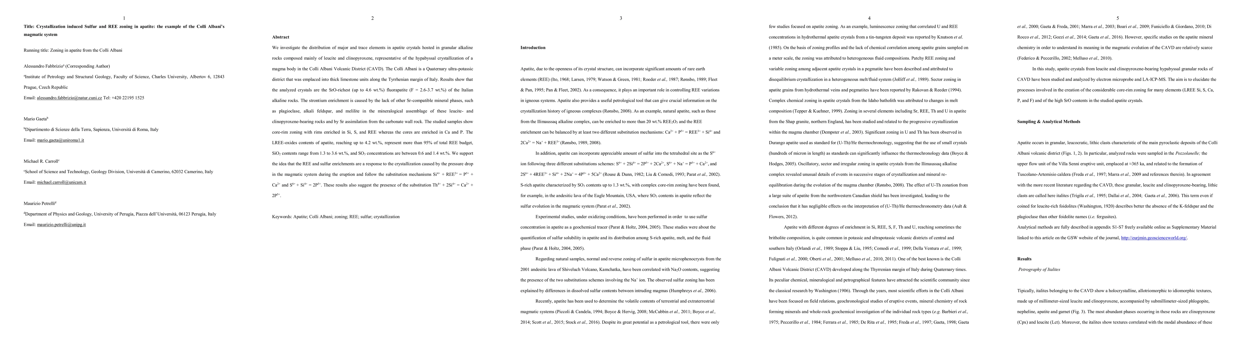 The research presents detailed major and trace element analyses of apatite crystals, elucidating their zoning patterns and implications for magma evolution in the Colli Albani Volcanic District.