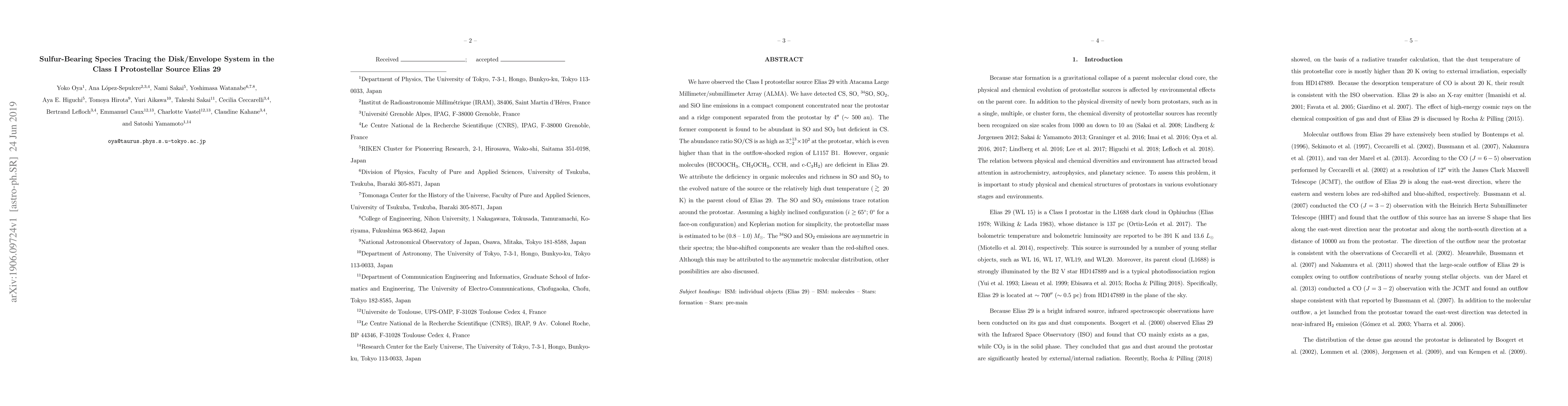 This study uses ALMA to observe sulfur-bearing species in Elias 29, revealing a protostar surrounded by a compact component rich in SO and SO$_2$ but deficient in CS. The SO/CS ratio is exceptionally high, suggesting evolved conditions or high dust temperatures. The protostellar mass is estimated to be between 0.8 and 1.0 \Msun, with asymmetric $^{34}$SO and SO$_2$ emissions hinting at complex molecular dynamics.