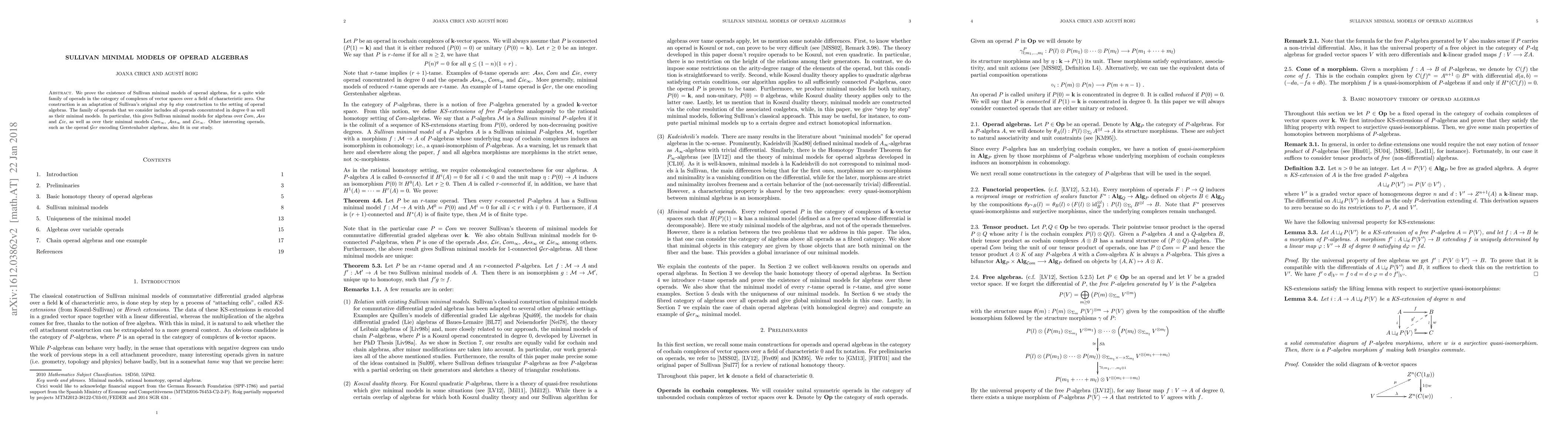 This paper establishes the existence of Sullivan minimal models for a broad class of operad algebras, adapting Sullivan's foundational construction to this context. It includes algebras over operads like Com, Ass, and Lie, and their minimal models, extending the results to operads such as Ger.