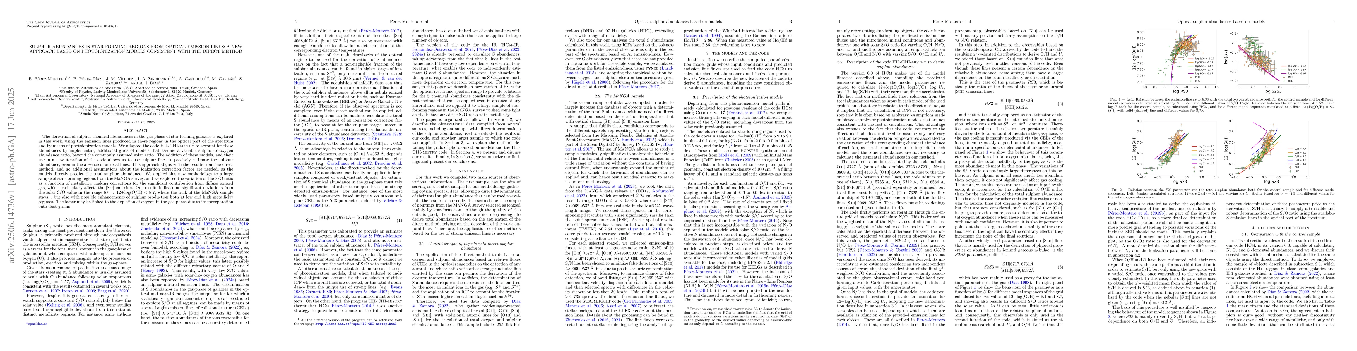 The derivation of sulphur chemical abundances in the gas-phase of star-forming galaxies is explored in this work, using the emission lines produced in these regions in the optical part of the spectrum and by means of photoionization models. We adapted the code HII-CHI-mistry to account for these abundances by implementing additional grids of models that assume a variable sulphur-to-oxygen abundance ratio, beyond the commonly assumed solar ratio. The addition of these models, and their use in a new iteration of the code allows us to use sulphur lines to precisely estimate the sulphur abundance, even in the absence of auroral lines. This approach aligns with the results from the direct method, and no additional assumptions about the ionization correction factor are needed, as the models directly predict the total sulphur abundance. We applied this new methodology to a large sample of star-forming regions from the MaNGA survey, and we explored the variation of the S/O ratio as a function of metallicity, making corrections for the significant contribution from diffuse ionized gas, which particularly affects the [SII] emission. Our results indicate no significant deviations from the solar S/O value in the range 8.0 < 12+log(O/H) < 8.7, where the bulk of the MaNGA sample stays, , but also with possible enhancements of sulphur production both at low and high metallicity regimes. The latter may be linked to the depletion of oxygen in the gas-phase due to its incorporation onto dust grains