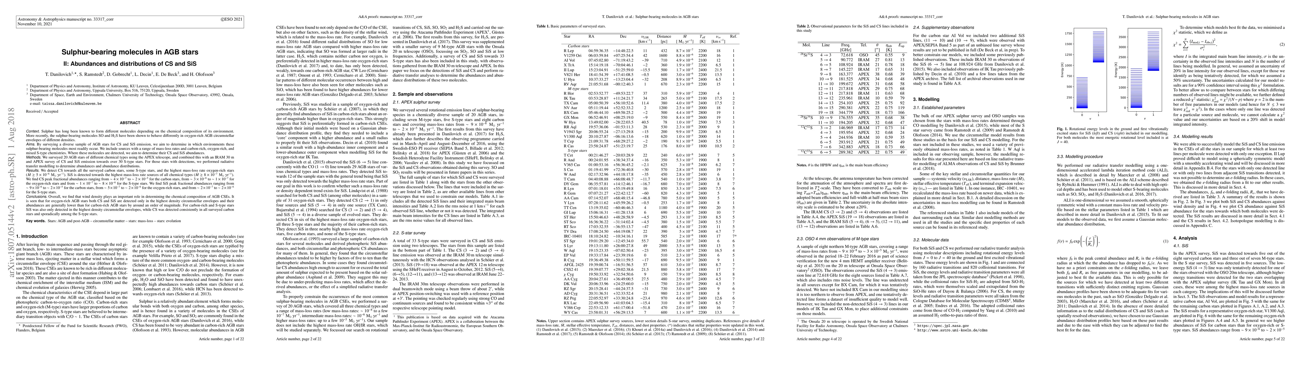This study investigates the abundances and distributions of CS and SiS in the circumstellar envelopes (CSEs) of 20 AGB stars, revealing that wind density significantly influences the chemical composition. CS and SiS are detected predominantly in high-density CSEs, with carbon stars consistently showing higher CS abundances compared to oxygen-rich stars.
