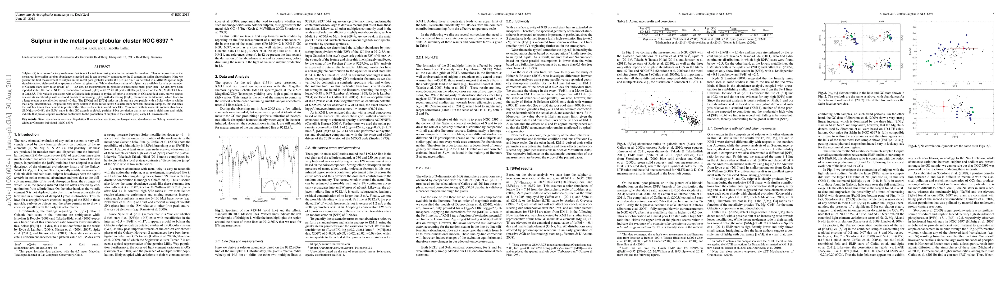 This paper reports the first measurement of sulphur in the metal-poor globular cluster NGC 6397, finding a [S/Fe] ratio of +0.52 ± 0.20, consistent with Galactic halo trends but potentially indicating a second branch of increasing [S/Fe] at lower metallicities. The study suggests sulphur's production in the early cluster environment may have involved proton-capture reactions.
