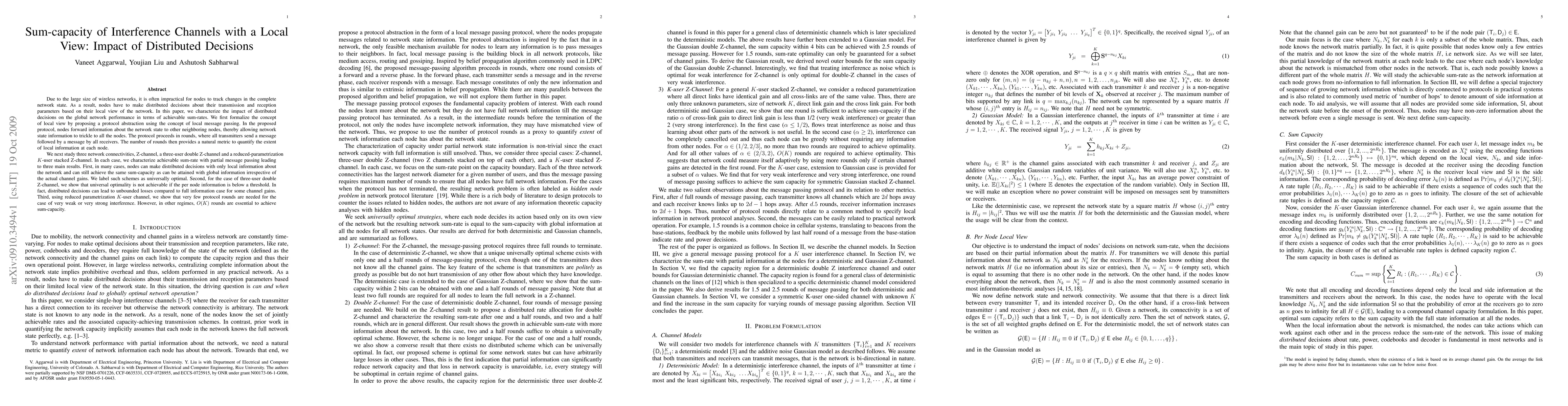 Due to the large size of wireless networks, it is often impractical for nodes to track changes in the complete network state. As a result, nodes have to make distributed decisions about their transmission and reception parameters based on their local view of the network. In this paper, we characterize the impact of distributed decisions on the global network performance in terms of achievable sum-rates. We first formalize the concept of local view by proposing a protocol abstraction using the concept of local message passing. In the proposed protocol, nodes forward information about the network state to other neighboring nodes, thereby allowing network state information to trickle to all the nodes. The protocol proceeds in rounds, where all transmitters send a message followed by a message by all receivers. The number of rounds then provides a natural metric to quantify the extent of local information at each node. We next study three network connectivities, Z-channel, a three-user double Z-channel and a reduced-parametrization $K$-user stacked Z-channel. In each case, we characterize achievable sum-rate with partial message passing leading to three main results. First, in many cases, nodes can make distributed decisions with only local information about the network and can still achieve the same sum-capacity as can be attained with global information irrespective of the actual channel gains. Second, for the case of three-user double Z-channel, we show that universal optimality is not achievable if the per node information is below a threshold. Third, using reduced parametrization $K$-user channel, we show that very few protocol rounds are needed for the case of very weak or very strong interference.