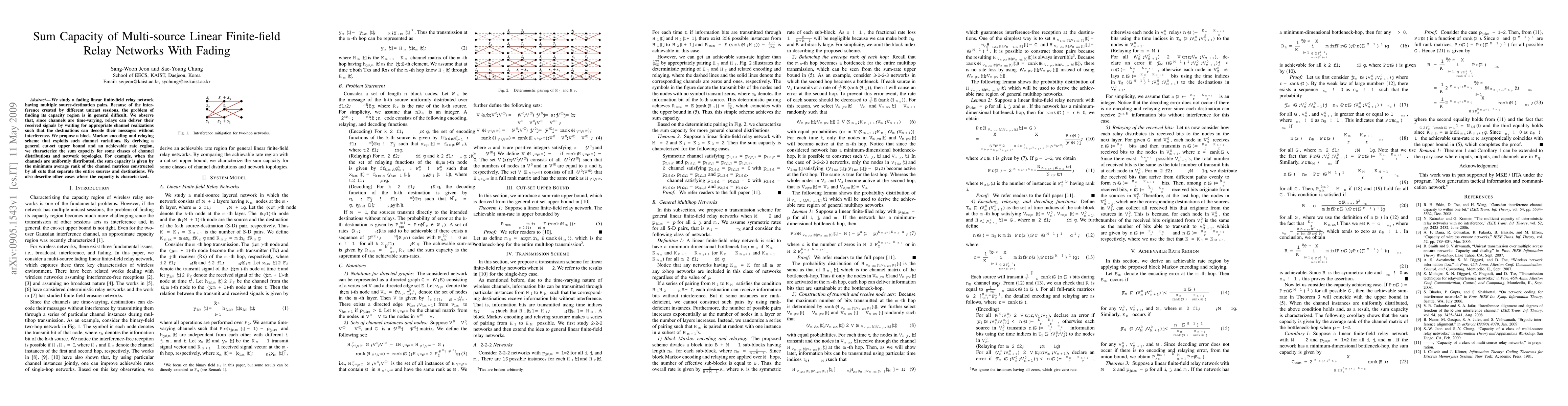 This paper investigates the sum capacity of multi-source linear finite-field relay networks with time-varying fading channels. It proposes a block Markov encoding and relaying scheme to manage interference and derives a general cut-set upper bound and achievable rate region, characterizing the sum capacity under various channel distributions and network topologies.