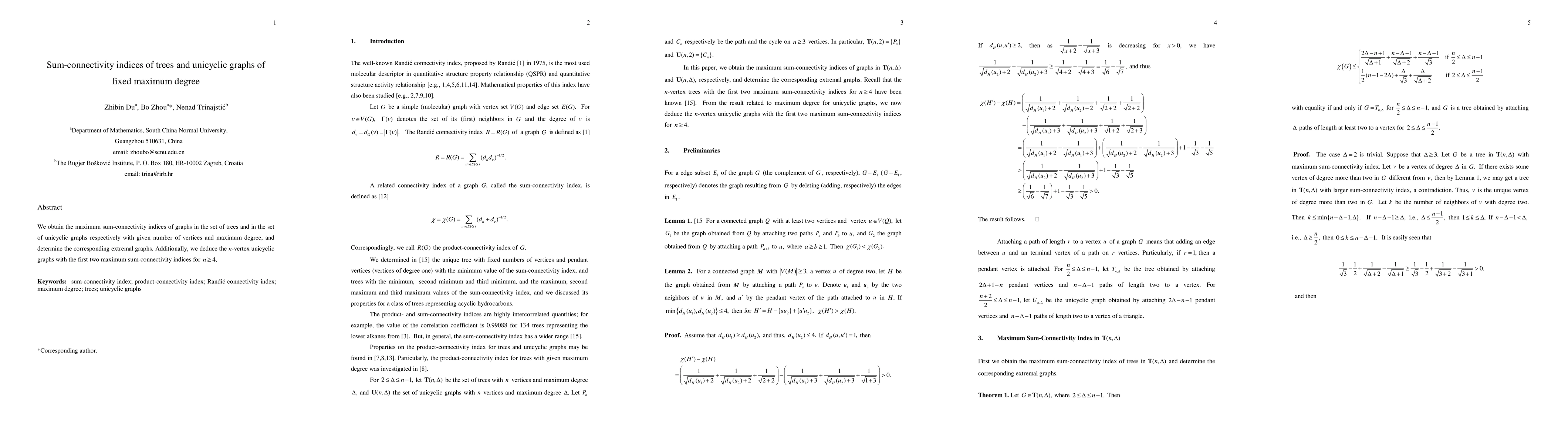 This research determines the maximum sum-connectivity indices for trees and unicyclic graphs with a fixed number of vertices and maximum degree, identifying the extremal graphs and the top two unicyclic graphs for $n\ge 4$.