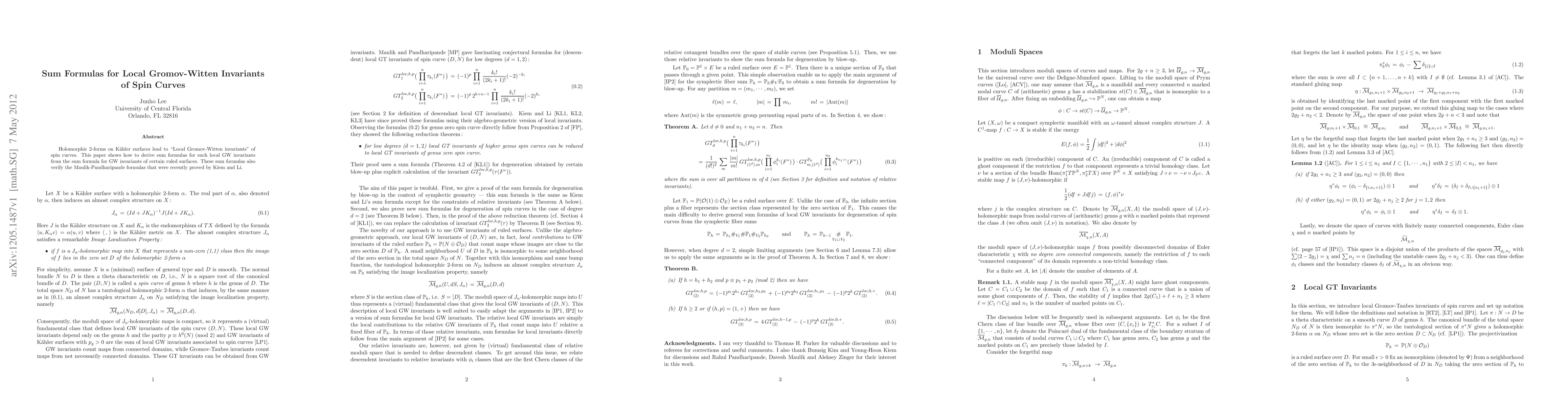Holomorphic 2-forms on K\"{a}hler surfaces lead to "Local Gromov-Witten invariants" of spin curves. This paper shows how to derive sum formulas for such local GW invariants from the sum formula for GW invariants of certain ruled surfaces. These sum formulas also verify the Maulik-Pandharipande formulas that were recently proved by Kiem and Li.