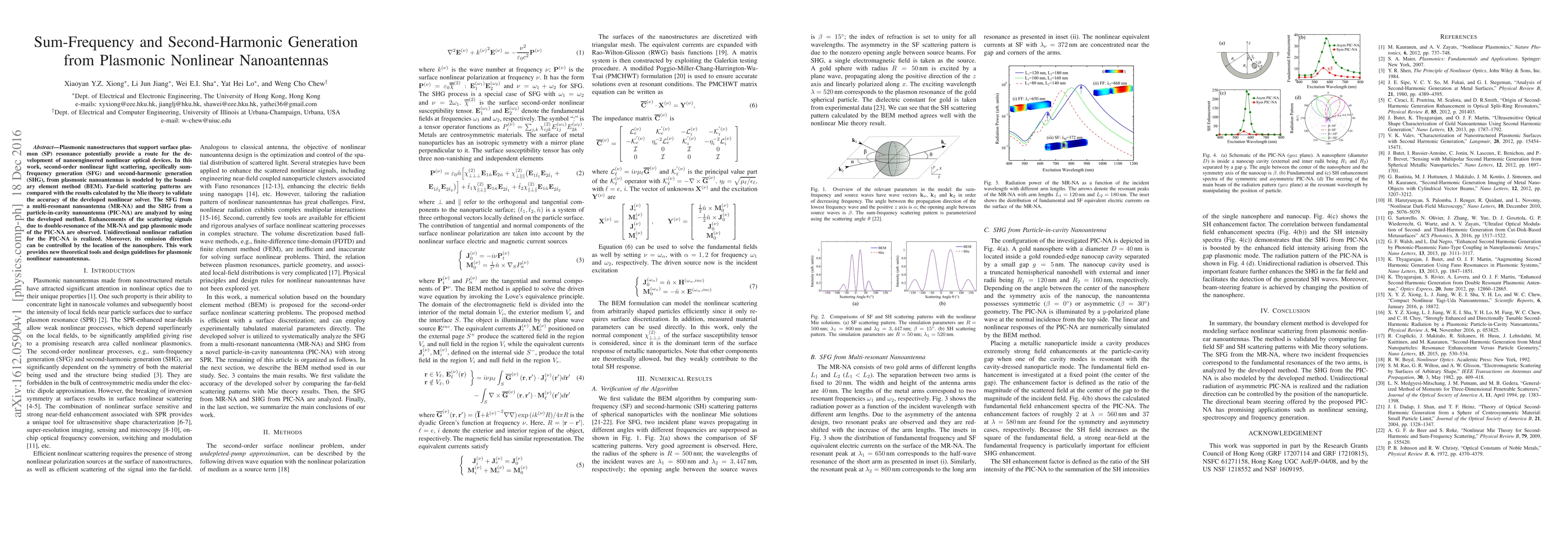 This paper models sum-frequency generation (SFG) and second-harmonic generation (SHG) from plasmonic nanoantennas using the boundary element method (BEM), comparing results with Mie theory. The study highlights enhancements from multi-resonant nanoantennas and unidirectional SHG from particle-in-cavity nanoantennas, offering new theoretical tools for their design.