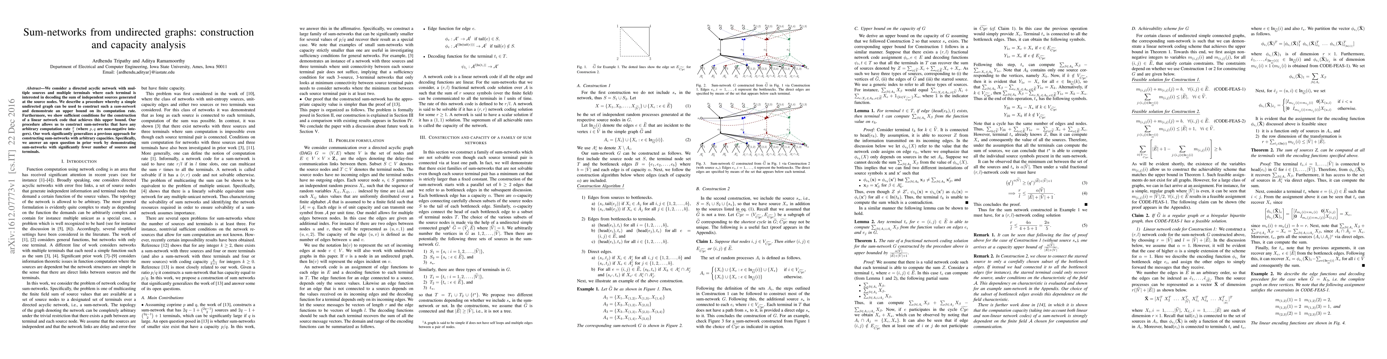 We consider a directed acyclic network with multiple sources and multiple terminals where each terminal is interested in decoding the sum of independent sources generated at the source nodes. We describe a procedure whereby a simple undirected graph can be used to construct such a sum-network and demonstrate an upper bound on its computation rate. Furthermore, we show sufficient conditions for the construction of a linear network code that achieves this upper bound. Our procedure allows us to construct sum-networks that have any arbitrary computation rate $\frac{p}{q}$ (where $p,q$ are non-negative integers). Our work significantly generalizes a previous approach for constructing sum-networks with arbitrary capacities. Specifically, we answer an open question in prior work by demonstrating sum-networks with significantly fewer number of sources and terminals.
