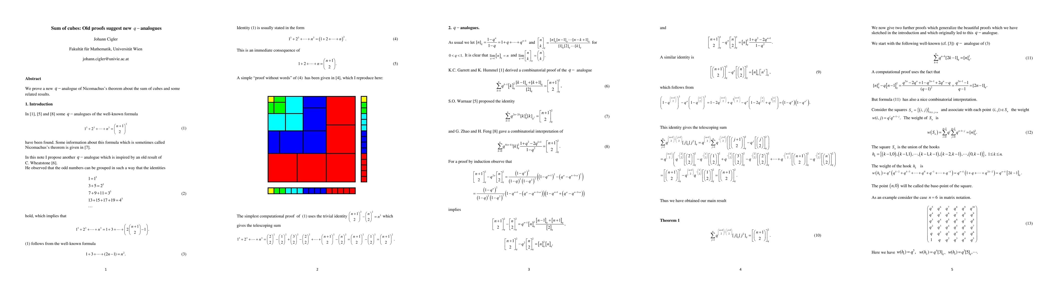 Researchers prove a new q-analogue of Nicomachus's Theorem about the sum of cubes, relating it to older proofs and offering new insights into number theory.