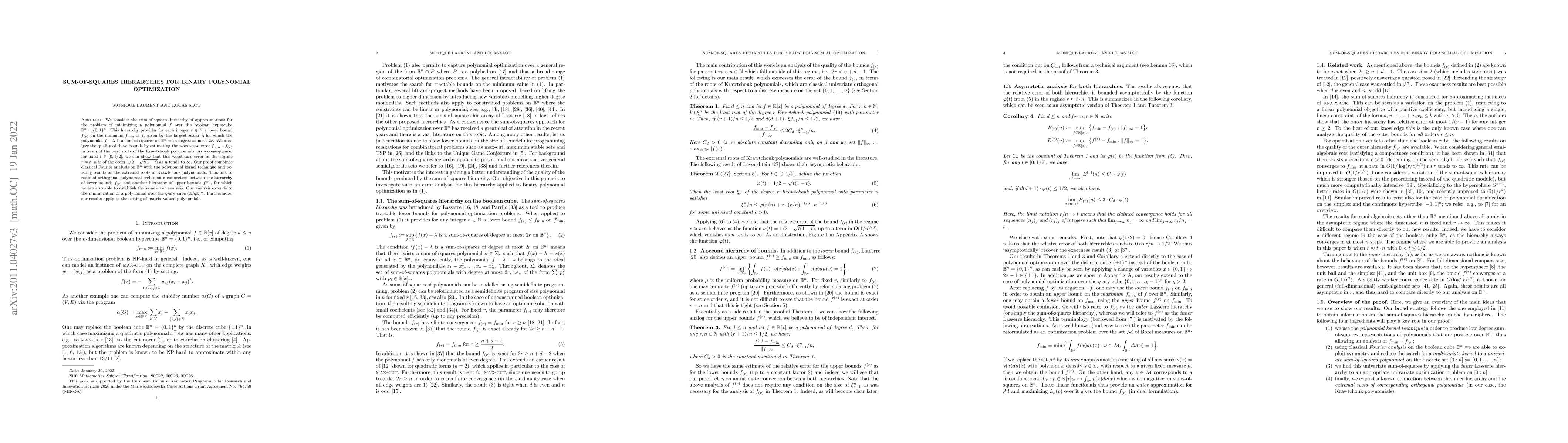 We consider the sum-of-squares hierarchy of approximations for the problem of minimizing a polynomial $f$ over the boolean hypercube $\mathbb{B}^{n}=\{0,1\}^n$. This hierarchy provides for each integer $r \in \mathbb{N}$ a lower bound $f_{(r)}$ on the minimum $f_{\min}$ of $f$, given by the largest scalar $\lambda$ for which the polynomial $f - \lambda$ is a sum-of-squares on $\mathbb{B}^{n}$ with degree at most $2r$. We analyze the quality of these bounds by estimating the worst-case error $f_{\min} - f_{(r)}$ in terms of the least roots of the Krawtchouk polynomials. As a consequence, for fixed $t \in [0, 1/2]$, we can show that this worst-case error in the regime $r \approx t \cdot n$ is of the order $1/2 - \sqrt{t(1-t)}$ as $n$ tends to $\infty$. Our proof combines classical Fourier analysis on $\mathbb{B}^{n}$ with the polynomial kernel technique and existing results on the extremal roots of Krawtchouk polynomials. This link to roots of orthogonal polynomials relies on a connection between the hierarchy of lower bounds $f_{(r)}$ and another hierarchy of upper bounds $f^{(r)}$, for which we are also able to establish the same error analysis. Our analysis extends to the minimization of a polynomial over the $q$-ary cube $(\mathbb{Z}/q\mathbb{Z})^{n}$.