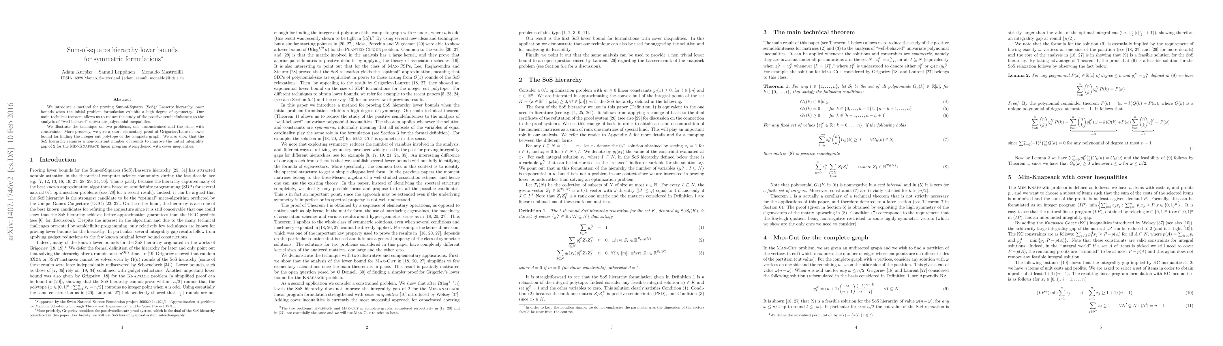The paper introduces a method for proving Sum-of-Squares (SoS)/ Lasserre hierarchy lower bounds by reducing the study of positive semidefiniteness to the analysis of 'well-behaved' univariate polynomial inequalities, particularly for symmetric formulations.