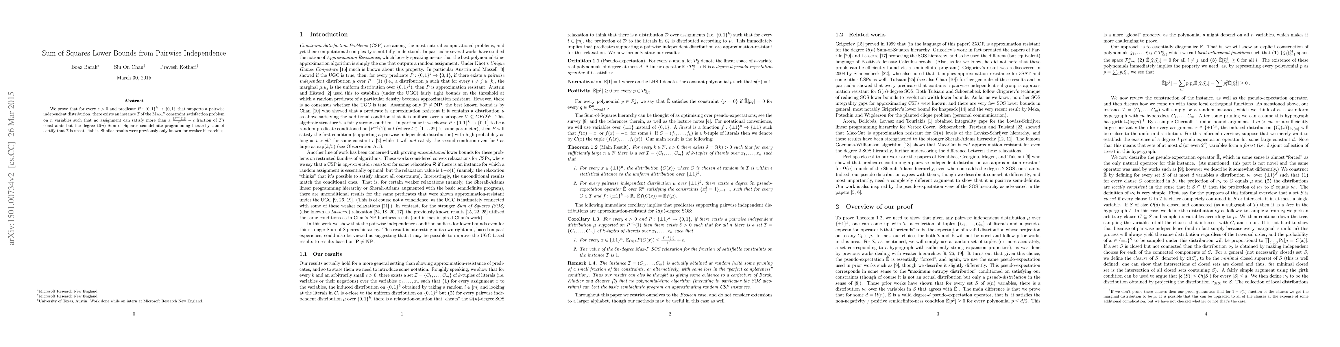 We prove that for every $\epsilon>0$ and predicate $P:\{0,1\}^k\rightarrow \{0,1\}$ that supports a pairwise independent distribution, there exists an instance $\mathcal{I}$ of the $\mathsf{Max}P$ constraint satisfaction problem on $n$ variables such that no assignment can satisfy more than a $\tfrac{|P^{-1}(1)|}{2^k}+\epsilon$ fraction of $\mathcal{I}$'s constraints but the degree $\Omega(n)$ Sum of Squares semidefinite programming hierarchy cannot certify that $\mathcal{I}$ is unsatisfiable. Similar results were previously only known for weaker hierarchies.