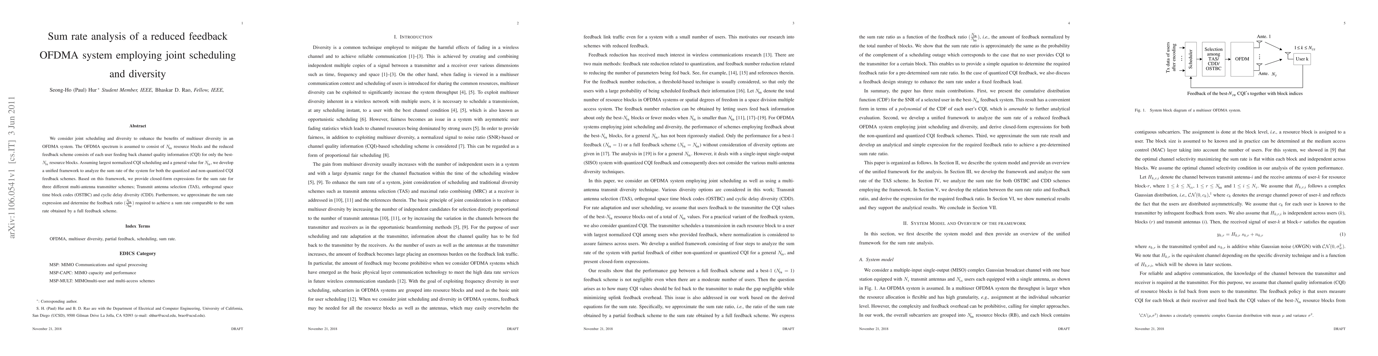 This paper analyzes the sum rate of a reduced feedback OFDMA system using joint scheduling and diversity, developing a unified framework for both quantized and non-quantized CQI feedback. It provides closed-form expressions for sum rate under three multi-antenna transmitter schemes and determines the optimal feedback ratio for comparable performance to full feedback.
