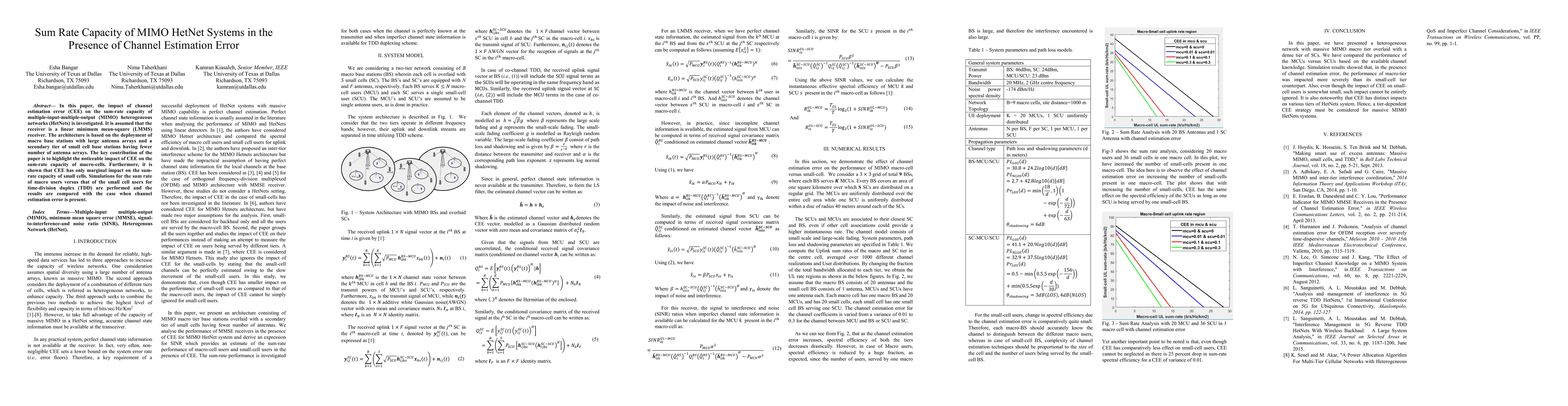 In this paper, the impact of channel estimation error (CEE) on the sum-rate capacity of multiple-input-multiple-output (MIMO) heterogeneous networks (HetNets) is investigated. It is assumed that the receiver is a linear minimum mean-square (LMMS) receiver. The architecture is based on the deployment of macro base stations with large antenna arrays and a secondary tier of small cell base stations having fewer number of antenna arrays. The key contribution of the paper is to highlight the noticeable impact of CEE on the sum-rate capacity of macro-cells. Furthermore, it is shown that CEE has only marginal impact on the sum-rate capacity of small cells. Simulations for the sum rate of macro users versus that of the small cell users for time-division duplex (TDD) are performed and the results are compared with the case when channel estimation error is present.