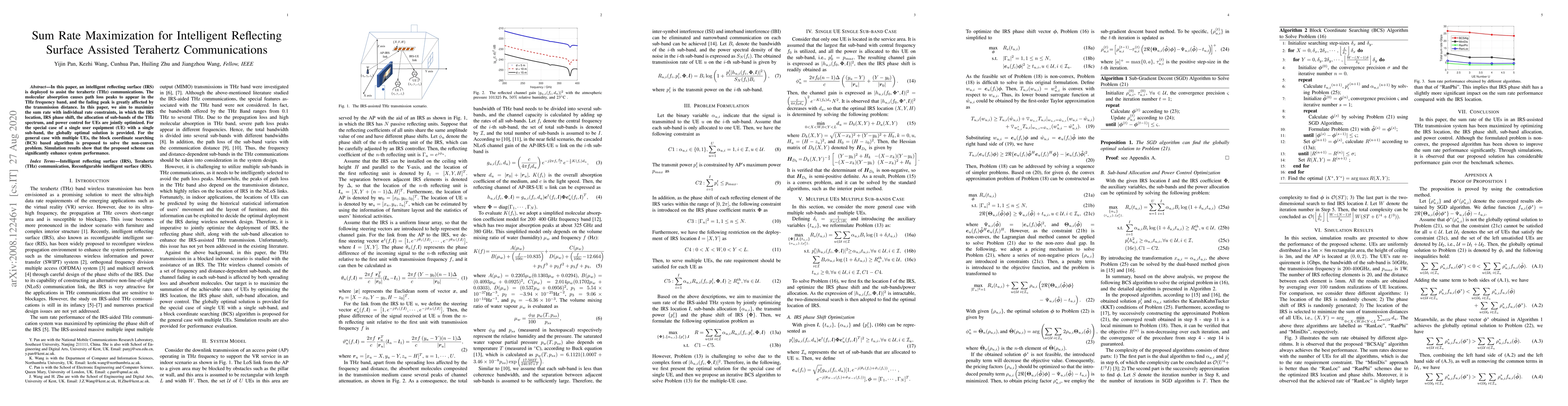 This paper optimizes the sum rate for terahertz communications using an intelligent reflecting surface (IRS) to mitigate path loss and maximize data rates. It provides a globally optimal solution for single-user scenarios and a block coordinate search algorithm for multi-user cases, demonstrating significant performance improvements through simulations.