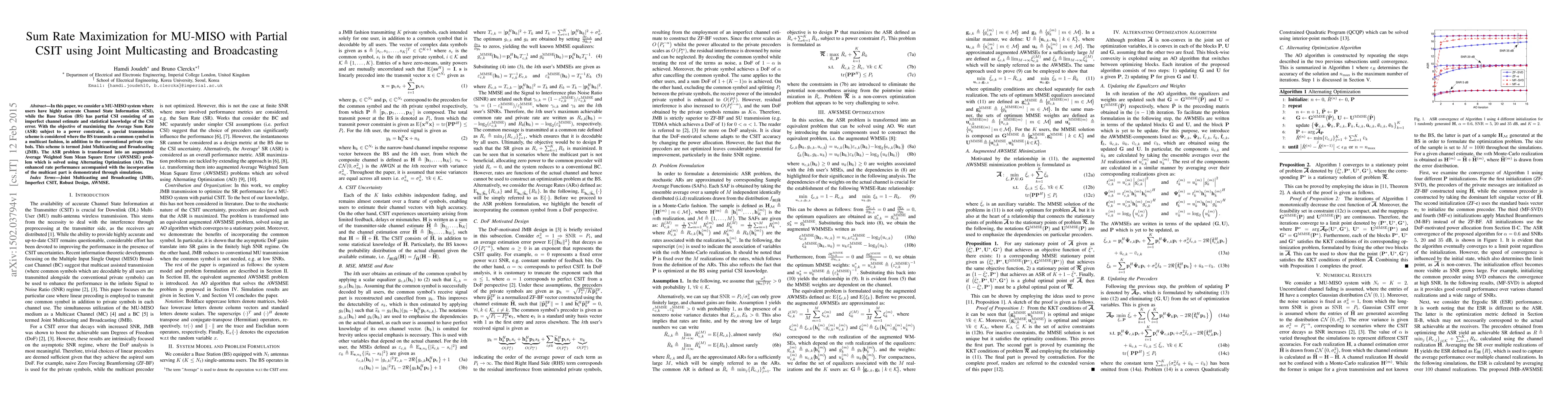 In this paper, we consider a MU-MISO system where users have highly accurate Channel State Information (CSI), while the Base Station (BS) has partial CSI consisting of an imperfect channel estimate and statistical knowledge of the CSI error. With the objective of maximizing the Average Sum Rate (ASR) subject to a power constraint, a special transmission scheme is considered where the BS transmits a common symbol in a multicast fashion, in addition to the conventional private symbols. This scheme is termed Joint Multicasting and Broadcasting (JMB). The ASR problem is transformed into an augmented Average Weighted Sum Mean Square Error (AWSMSE) problem which is solved using Alternating Optimization (AO). The enhanced rate performance accompanied with the incorporation of the multicast part is demonstrated through simulations.