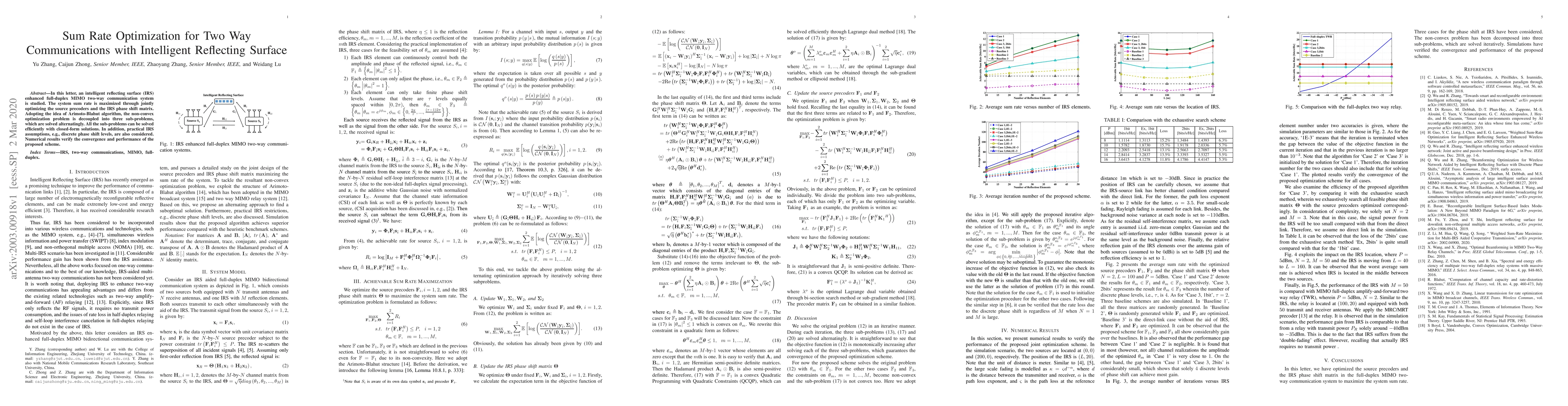 In this letter, an intelligent reflecting surface (IRS) enhanced full-duplex MIMO two-way communication system is studied. The system sum rate is maximized through jointly optimizing the source precoders and the IRS phase shift matrix. Adopting the idea of Arimoto-Blahut algorithm, the non-convex optimization problem is decoupled into three sub-problems, which are solved alternatingly. All the sub-problems can be solved efficiently with closed-form solutions. In addition, practical IRS assumptions, e.g., discrete phase shift levels, are also considered. Numerical results verify the convergence and performance of the proposed scheme.