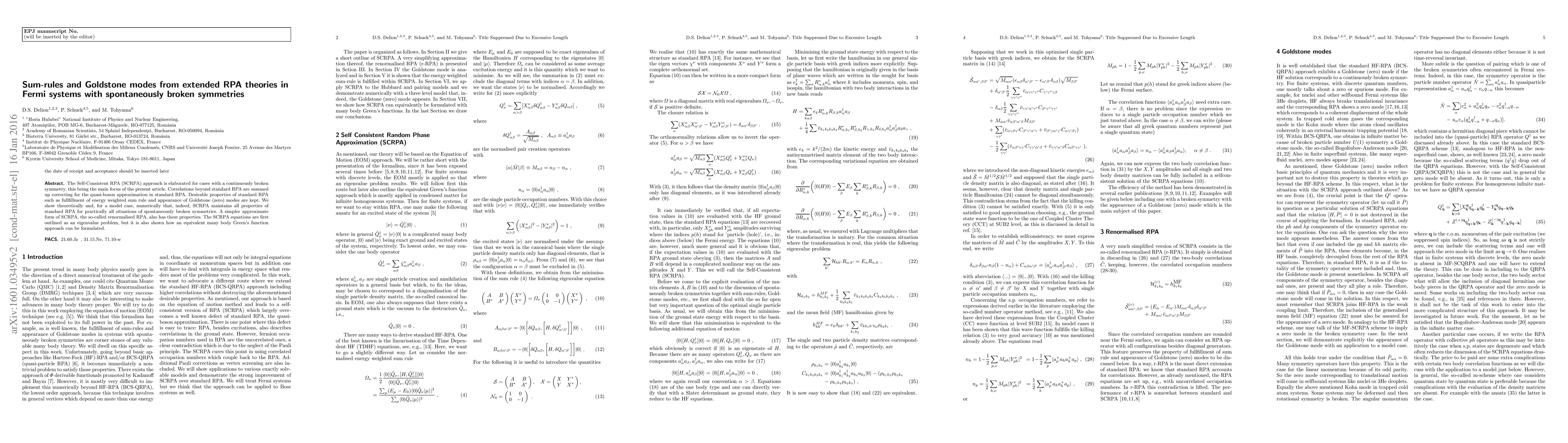 Researchers developed an extended RPA theory to describe Fermi systems with spontaneously broken symmetries, showing that it maintains desirable properties like energy-weighted sum rules and Goldstone modes, while correcting for quasi-boson approximations.
