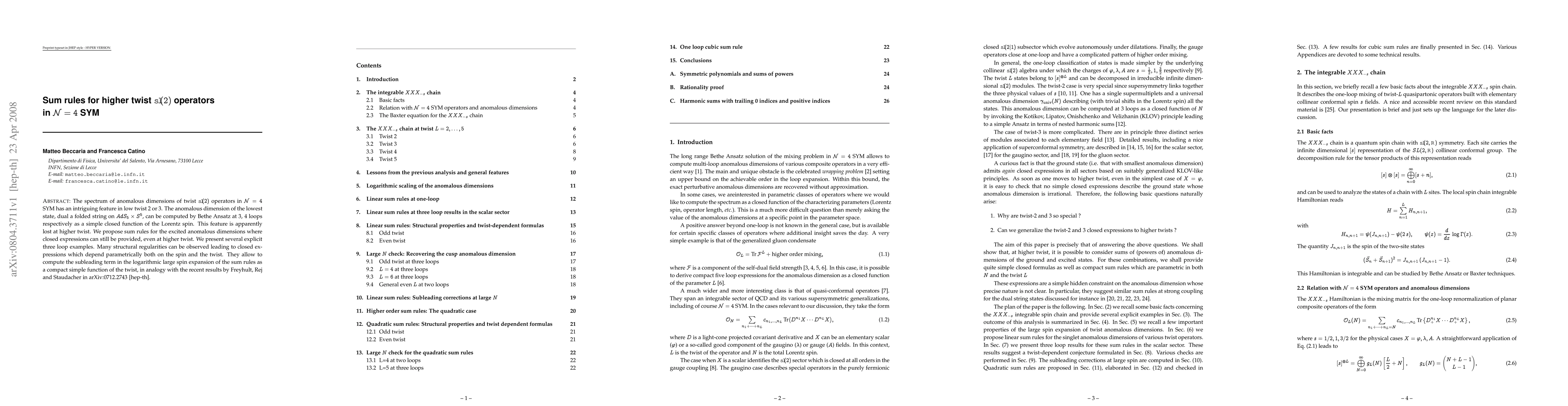 This paper proposes sum rules for the anomalous dimensions of higher twist sl(2) operators in N=4 Super Yang-Mills theory, providing closed expressions even at higher twists. It demonstrates structural regularities and computes subleading terms in the large spin expansion.