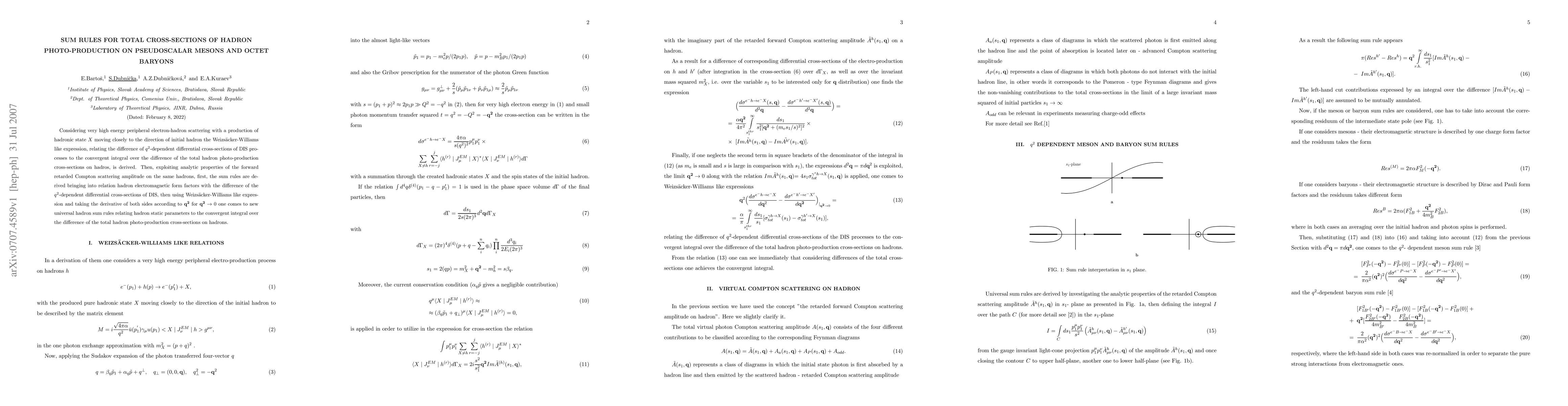 Researchers derived sum rules relating hadron static parameters to total cross-sections of hadron photo-production on pseudoscalar mesons and octet baryons, offering a new connection between hadronic properties and high-energy scattering data.