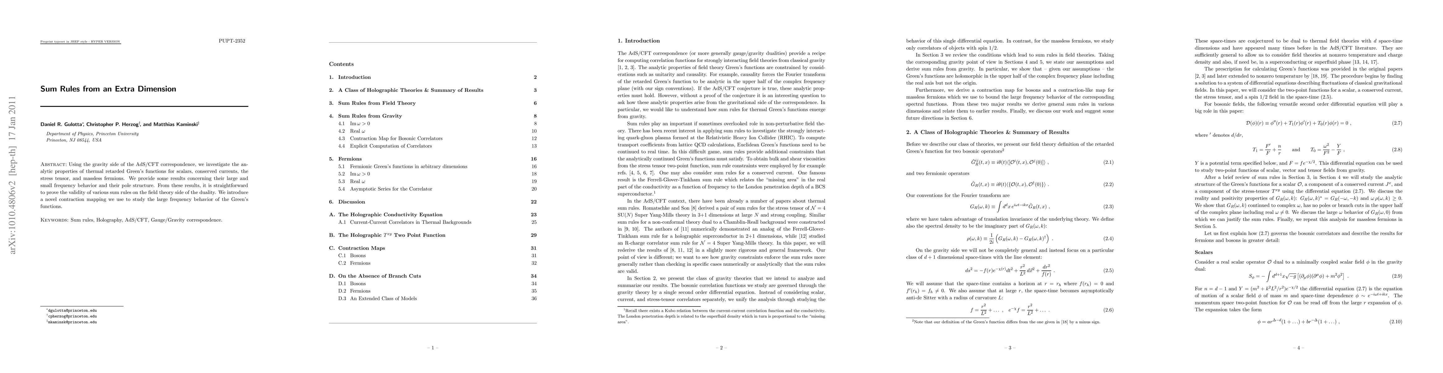 Researchers used the AdS/CFT correspondence to investigate thermal retarded Green's functions for scalars, currents, stress tensor, and massless fermions, proving various sum rules in field theory.