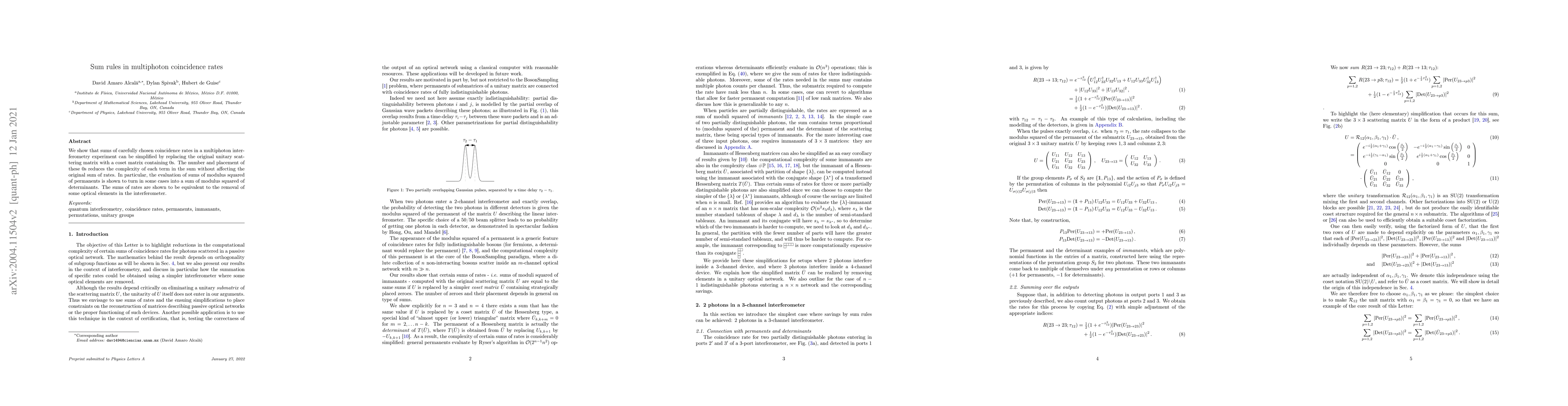 This research simplifies the evaluation of sums of coincidence rates in multiphoton interferometry by using coset matrices with strategically placed zeros, reducing complexity while maintaining the integrity of the sum. This simplification can transform sums of modulus squared of permanents into sums of modulus squared of determinants, akin to removing certain optical elements in the interferometer.