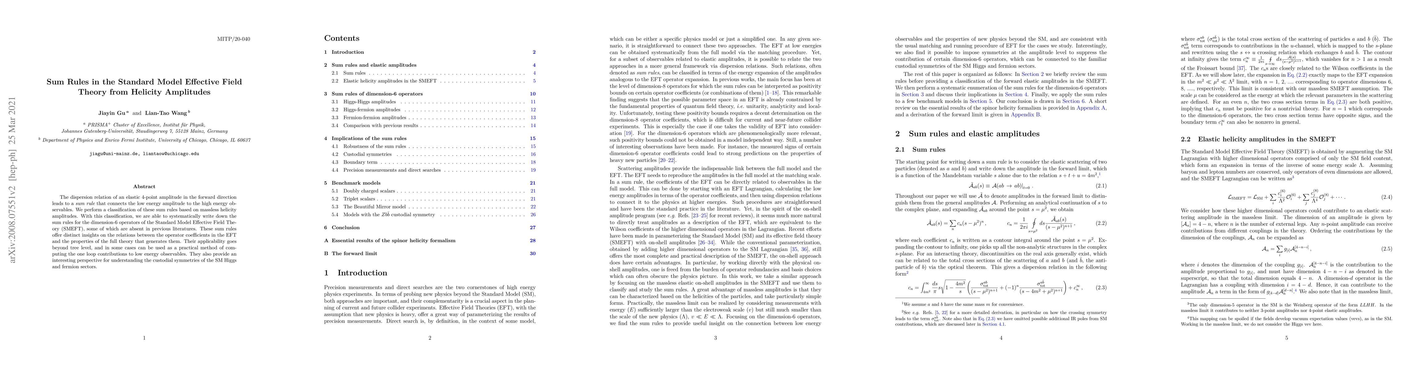 The dispersion relation of an elastic 4-point amplitude in the forward direction leads to a sum rule that connects the low energy amplitude to the high energy observables. We perform a classification of these sum rules based on massless helicity amplitudes. With this classification, we are able to systematically write down the sum rules for the dimension-6 operators of the Standard Model Effective Field Theory (SMEFT), some of which are absent in previous literatures. These sum rules offer distinct insights on the relations between the operator coefficients in the EFT and the properties of the full theory that generates them. Their applicability goes beyond tree level, and in some cases can be used as a practical method of computing the one loop contributions to low energy observables. They also provide an interesting perspective for understanding the custodial symmetries of the SM Higgs and fermion sectors.