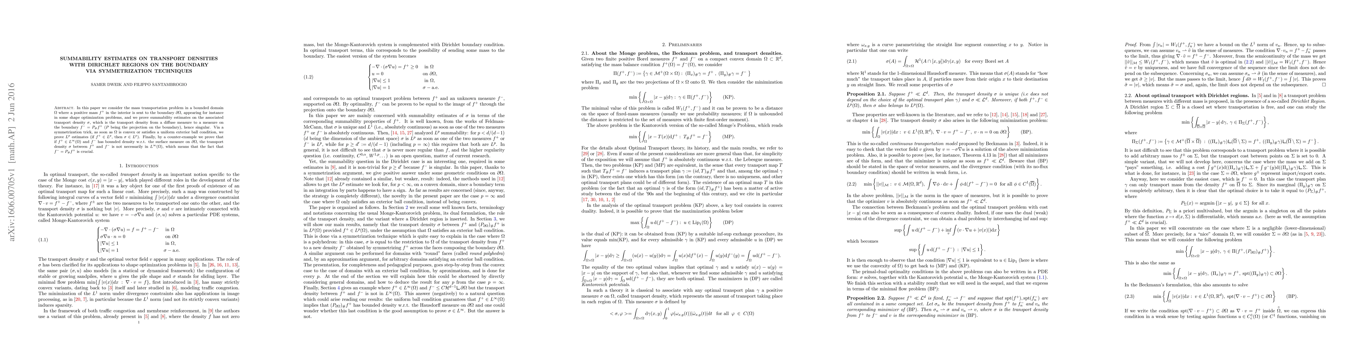 In this paper we consider the mass transportation problem in a bounded domain $\Omega$ where a positive mass f + in the interior is sent to the boundary $\partial\Omega$, appearing for instance in some shape optimization problems, and we prove summability estimates on the associated transport density $\sigma$, which is the transport density from a diffuse measure to a measure on the boundary f -- = P \# f + (P being the projection on the boundary), hence singular. Via a symmetrization trick, as soon as $\Omega$ is convex or satisfies a uniform exterior ball condition, we prove L p estimates (if f + $\in$ L p, then $\sigma$ $\in$ L p). Finally, by a counterexample we prove that if f + $\in$ L $\infty$ $(\Omega)$ and f -- has bounded density w.r.t. the surface measure on $\partial\Omega$, the transport density $\sigma$ between f + and f -- is not necessarily in L $\infty$ $(\Omega)$, which means that the fact that f -- = P \# f + is crucial.