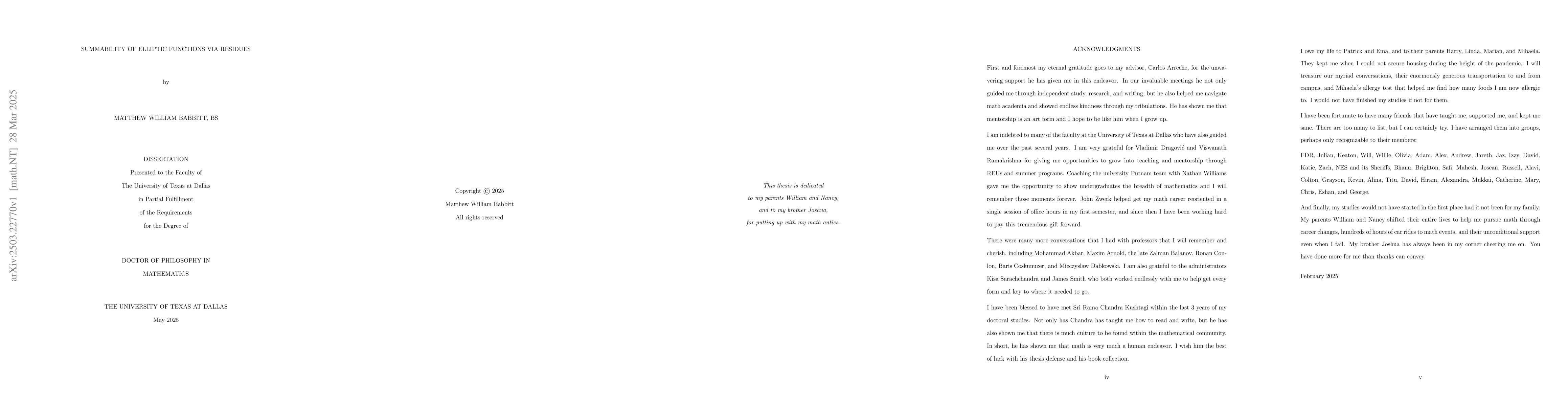 This work is significant as it provides a comprehensive framework for analyzing summability in the context of elliptic functions, which has implications for various areas including difference equations over elliptic curves, elliptic hypergeometric functions, and combinatorial studies.
