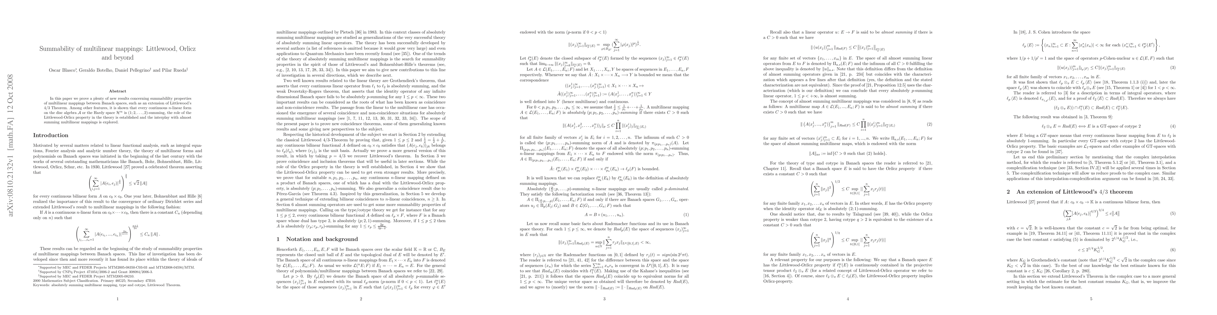 The paper presents new results on the summability properties of multilinear mappings between Banach spaces, extending Littlewood's 4/3 Theorem. It demonstrates that continuous n-linear forms on disc algebra or Hardy space are (1;2,...,2)-summing, establishes the significance of the Littlewood-Orlicz property, and investigates the relationship with almost summing multilinear mappings.