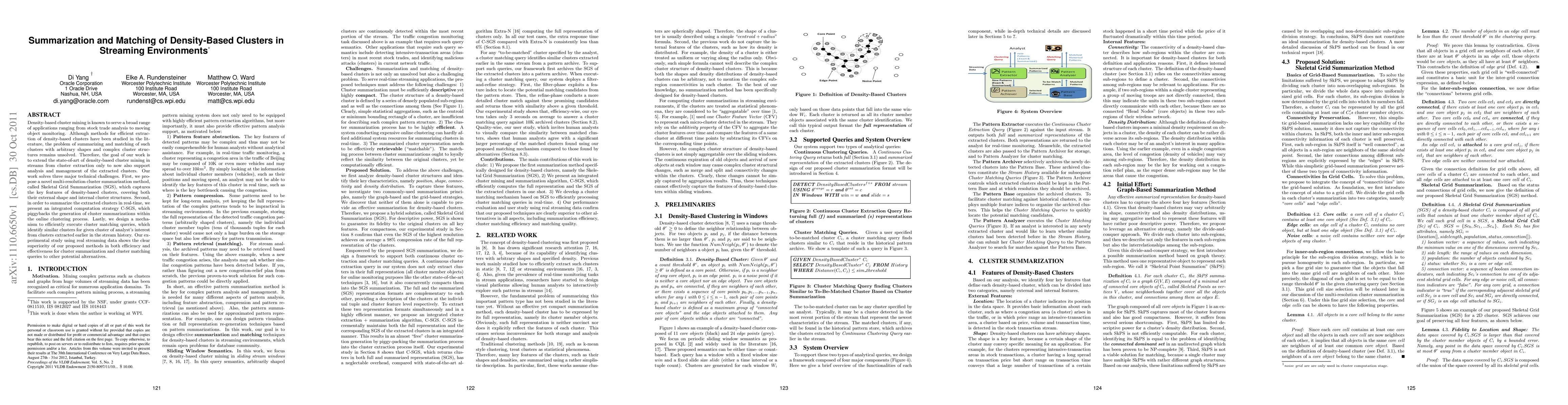This research introduces Skeletal Grid Summarization (SGS) for efficient density-based cluster summarization in streaming environments, integrating it into the online clustering process (C-SGS). It also presents a mechanism for effective cluster matching queries, demonstrating superior efficiency and effectiveness over existing methods in experiments with real streaming data.