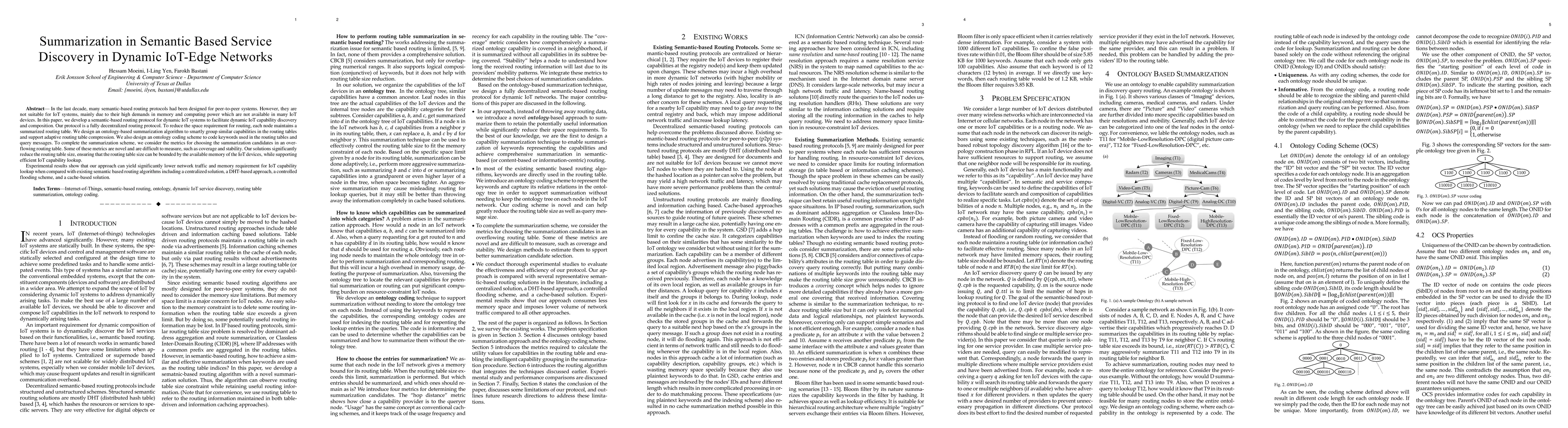 This paper proposes a semantic-based routing protocol for IoT systems that reduces memory usage while facilitating dynamic capability discovery and composition. It achieves this through summarization algorithms and coding schemes, resulting in lower network traffic and memory requirements.