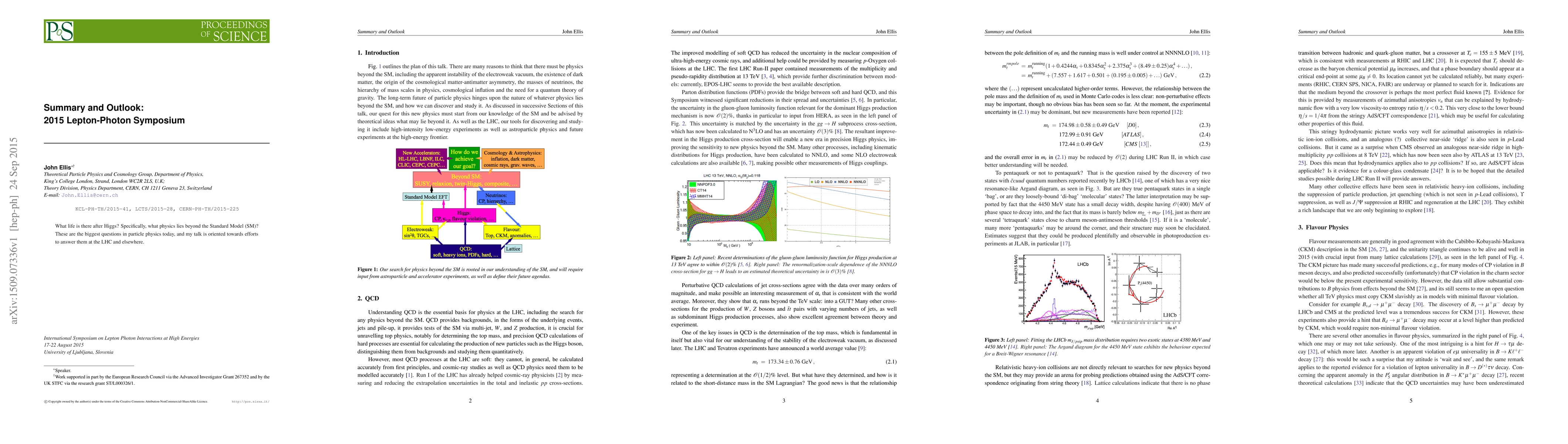 What life is there after Higgs? Specifically, what physics lies beyond the Standard Model (SM)? These are the biggest questions in particle physics today, and my talk is oriented towards efforts to answer them at the LHC and elsewhere.