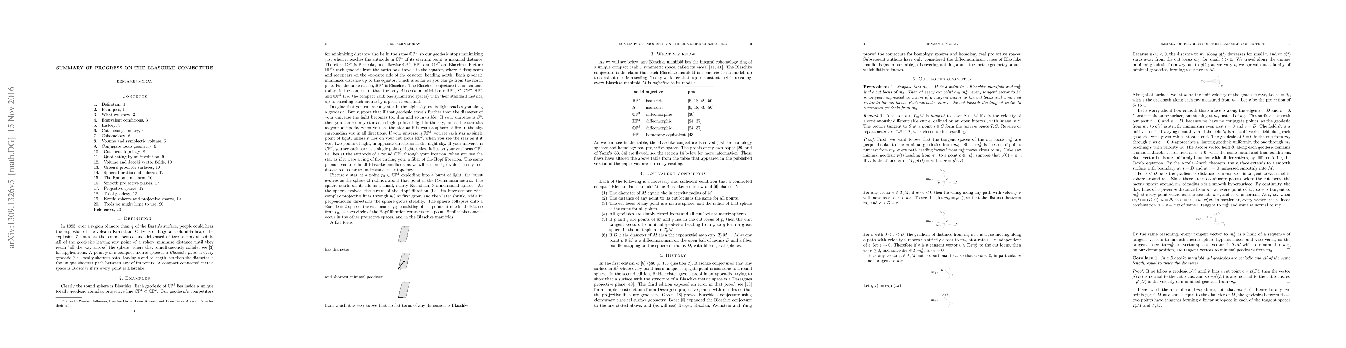 The Blaschke conjecture posits that compact Riemannian manifolds with equal injectivity radius and diameter are, up to rescaling, compact rank one symmetric spaces. Recent progress includes proving their cohomology matches that of rank one symmetric spaces and confirming the conjecture for homology spheres and real projective spaces.