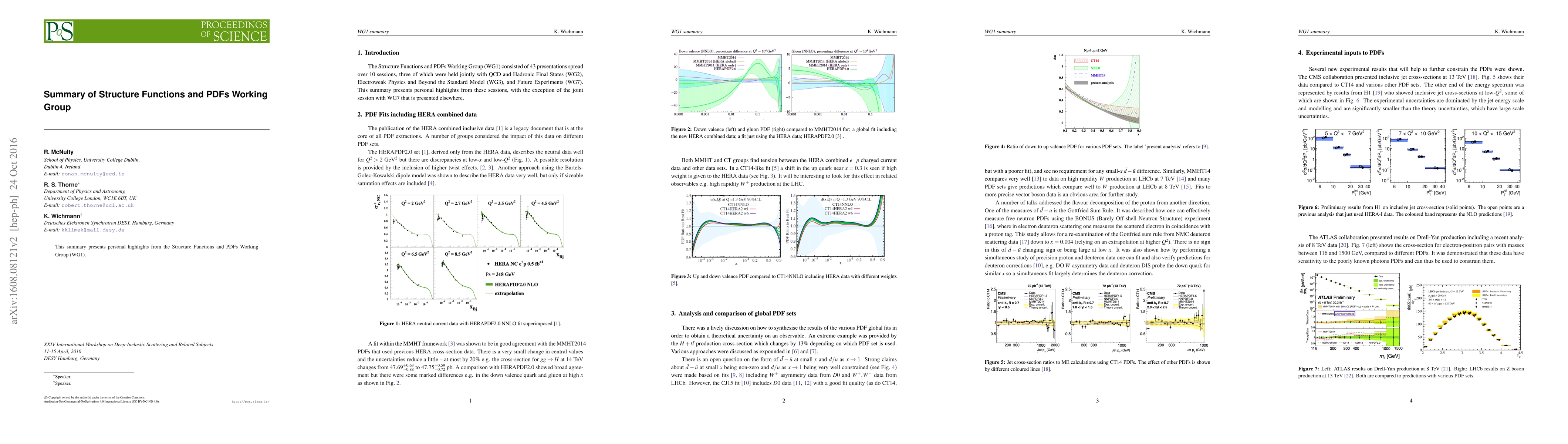 This summary presents personal highlights from the Structure Functions and PDFs Working Group (WG1) at DIS 2016.