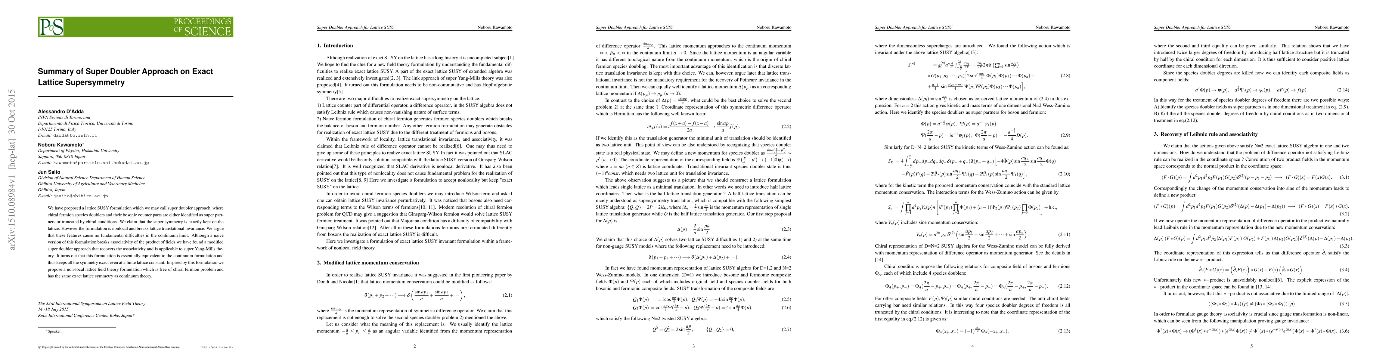 This paper proposes a "super doubler approach" for lattice supersymmetry where chiral fermion doublers are either identified as superpartners or truncated, maintaining exact lattice supersymmetry despite nonlocality and broken translational invariance. A modified version restores associativity and is applicable to super Yang-Mills theory, showing equivalence to the continuum formulation.