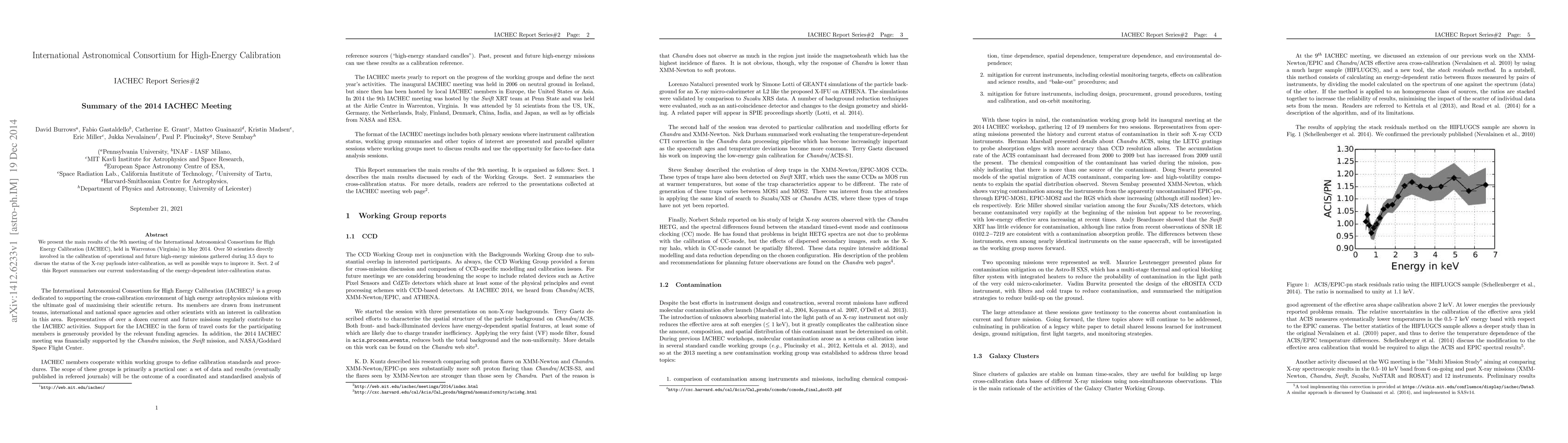 We present the main results of the 9th meeting of the International Astronomical Consortium for High Energy Calibration (IACHEC), held in Warrenton (Virginia) in May 2014. Over 50 scientists directly involved in the calibration of operational and future high-energy missions gathered during 3.5 days to discuss the status of the X-ray payloads inter-calibration, as well as possible ways to improve it. Sect.2 of this Report summarises our current understanding of the energy-dependent inter-calibration status.