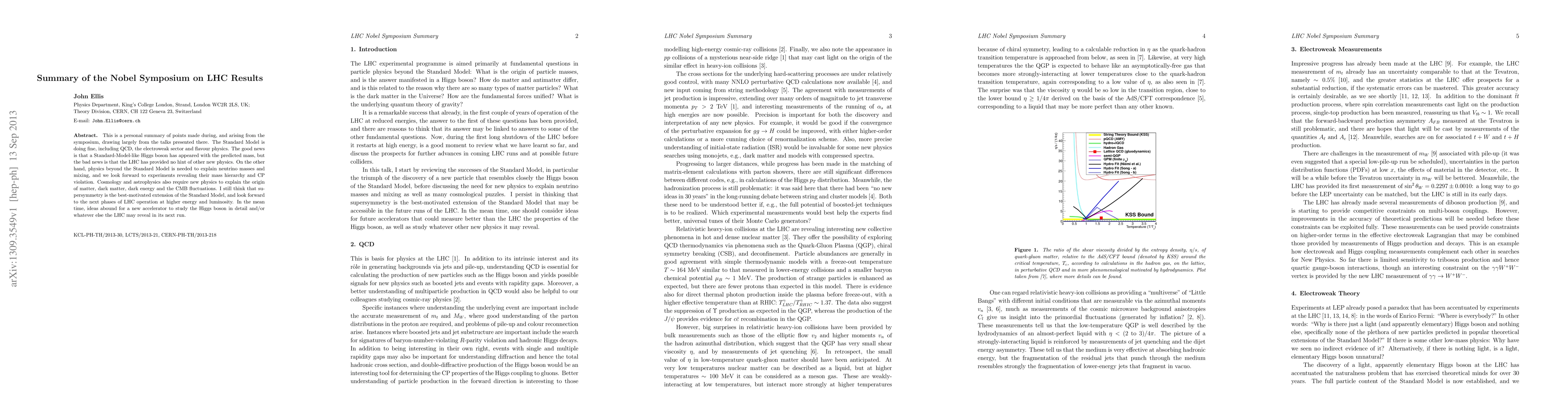 The Nobel Symposium on LHC results highlights the Standard Model's robustness, confirming a Standard-Model-like Higgs boson, while noting the absence of new physics beyond the Standard Model. Future explorations are anticipated to uncover neutrino mass hierarchy and CP violation, alongside addressing cosmological phenomena.